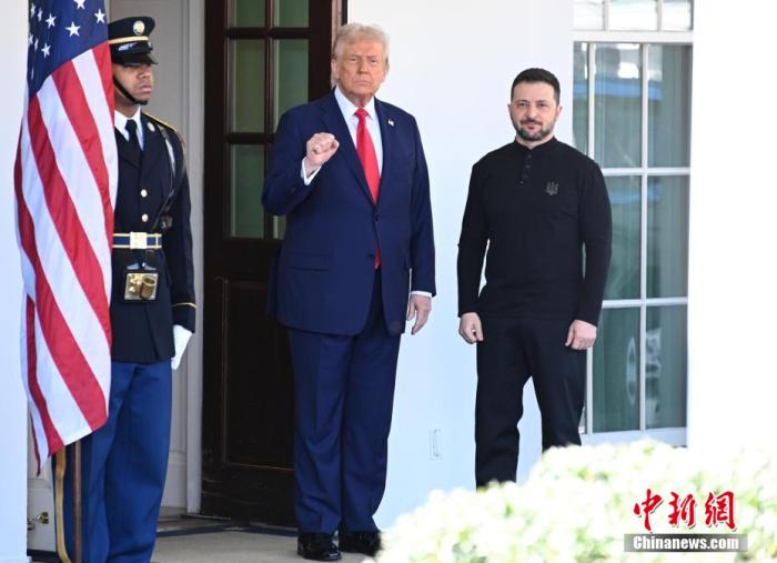 當地時間2月28日,華盛頓,美國總統特朗普與烏克蘭總統澤連斯基在白宮會晤時發生爭吵,不歡而散。圖為特朗普在白宮迎接澤連斯基抵達。中新社記者 陳孟統 攝