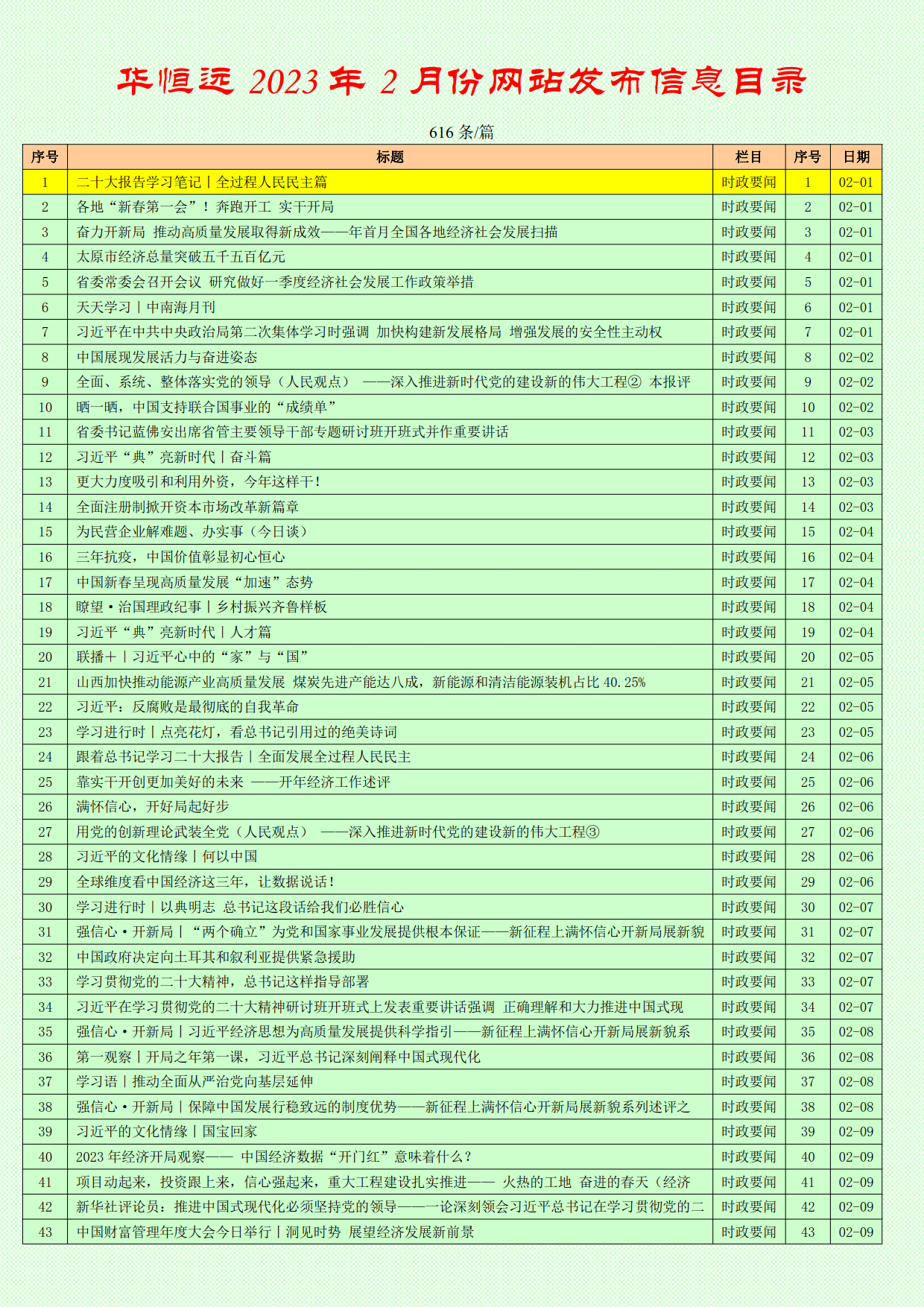 2023年2月份信息目錄