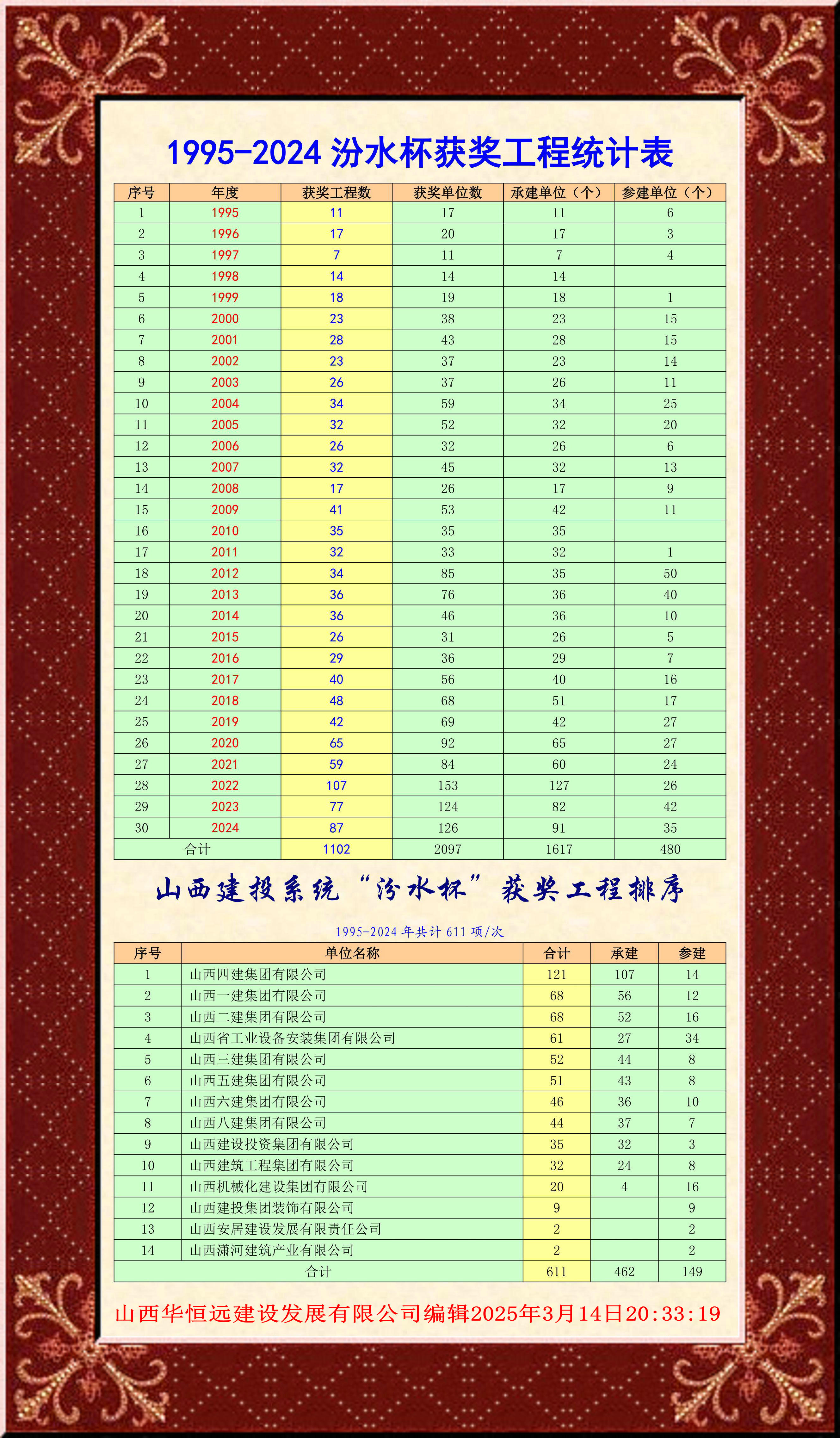 【行業資料】1995-2021 山西省汾水杯工程總榜單
