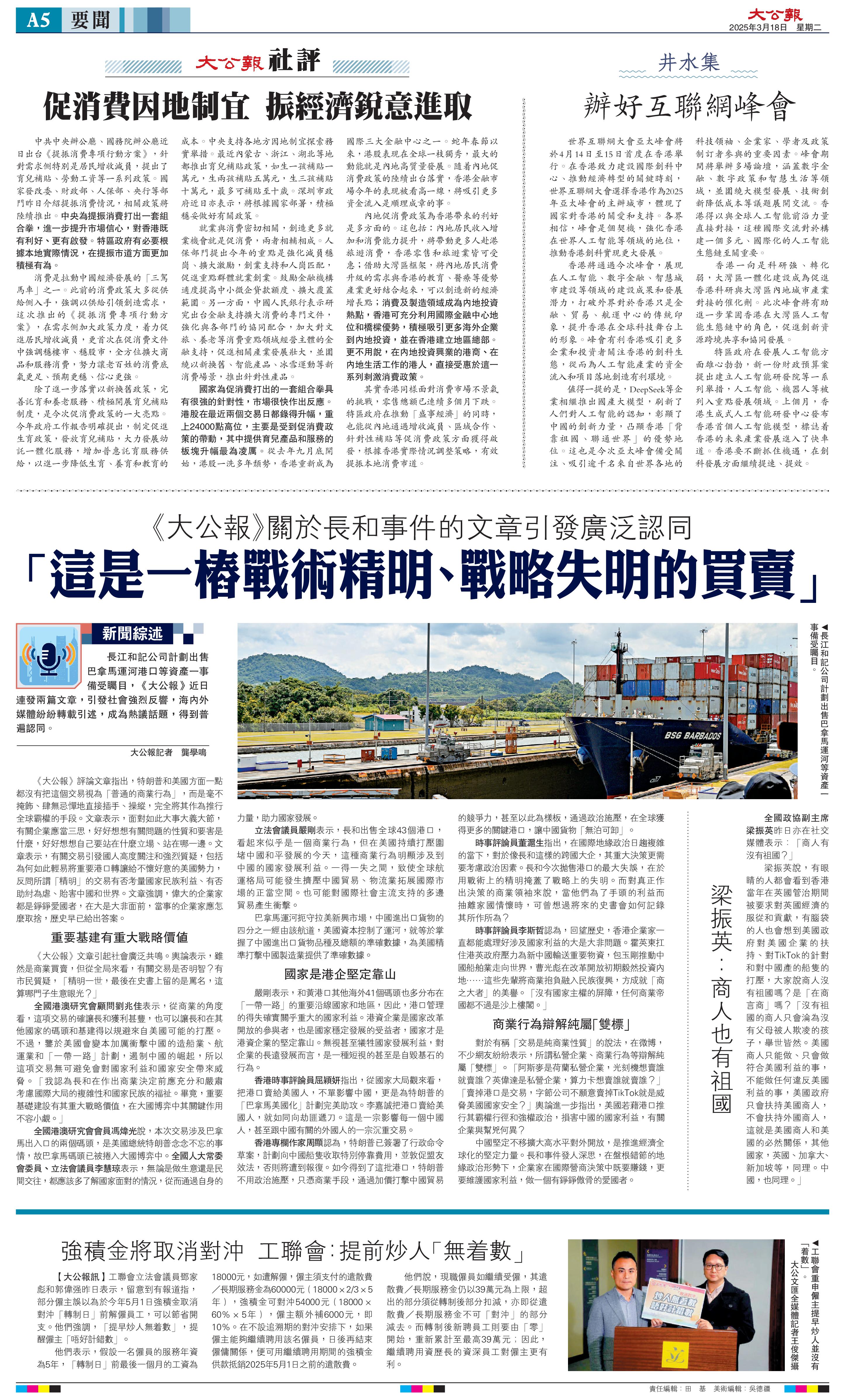 并稱,李嘉誠(chéng)這一舉動(dòng)更像是在給美國(guó)霸權(quán)遞刀子,同時(shí)對(duì)其發(fā)出質(zhì)問“是否在助紂為虐”,此外,香港《大公報(bào)》再次發(fā)表文章,文章中提出了五個(gè)問題來(lái)質(zhì)疑李嘉誠(chéng)。