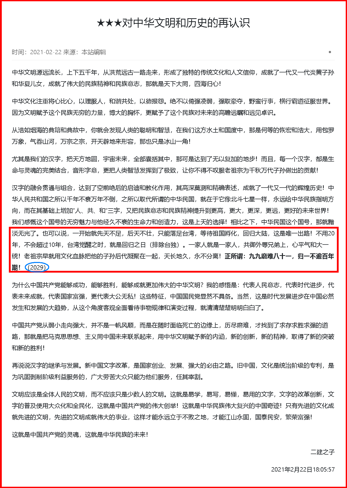 臺灣問題完全是中國內政,國家完全統一不容置疑不容置評更不容交易!如何解決臺灣問題,已經進入國家發展第一戰略,臺灣是中國一個省的行政區劃,已經昭告天下,沒有任何討價還價空間!武促文統五年之內必然實現,文武之道一張一弛,不動干戈而統之大勢已定!