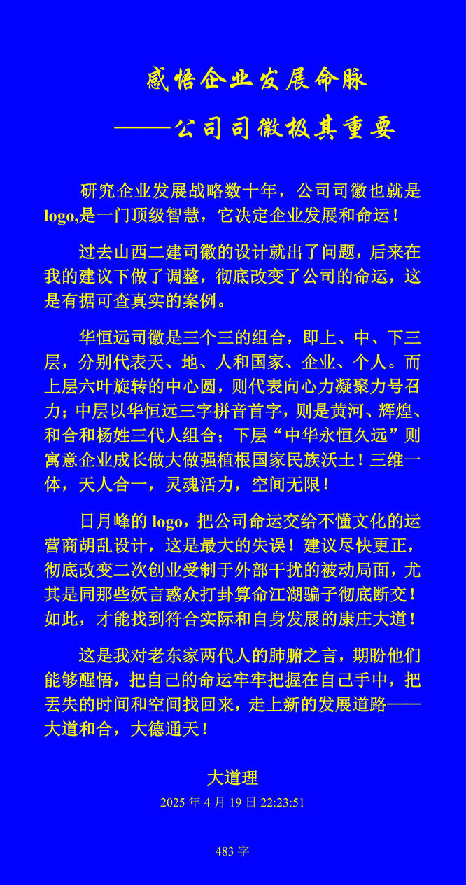 研究企業(yè)發(fā)展戰(zhàn)略數(shù)十年,公司司徽也就是logo,是一門頂級智慧,它決定企業(yè)發(fā)展和命運!