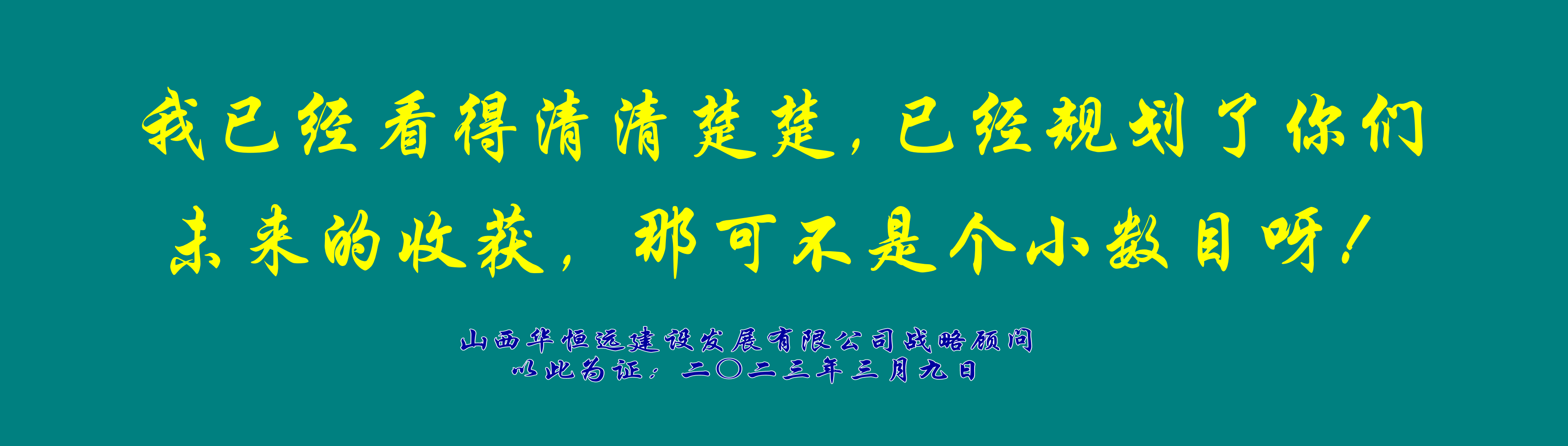 成就未來(lái),就是成就華恒遠(yuǎn)!成就華恒遠(yuǎn),就是成就自己一輩子的事業(yè)!十年后,大家都是這輩子最大的贏家,因?yàn)槟銈兊母冻鏊玫降模沁@個(gè)偉大企業(yè)給你們的豐厚回報(bào)!
