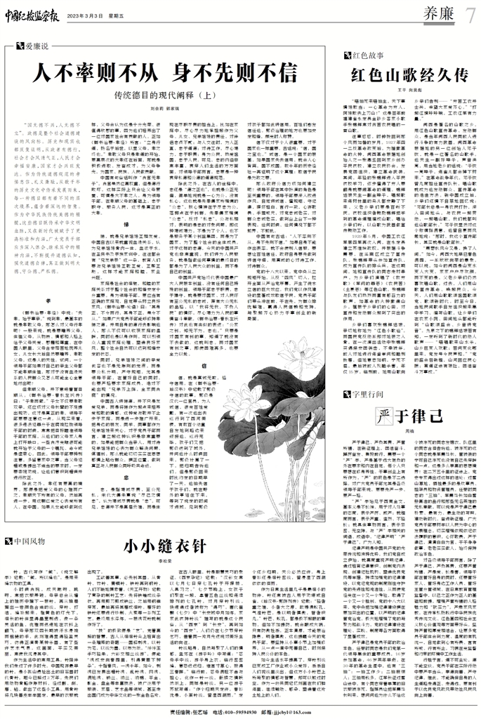 但孝順父母,并不意味著盲目順從。《群書治要·春秋左氏傳》曰:“子孝而箴。”子女不僅要孝敬雙親,還應該對父母長輩的不足提出規(guī)勸,這才是真正的孝。領(lǐng)導干部更要注意這一點。從現(xiàn)實來看,很多違法犯罪分子在腐蝕拉攏領(lǐng)導干部的時候,常常把目標瞄準領(lǐng)導干部的家庭,從他們的父母家人身上打開缺口。一些貪污受賄很可能就開始于父母的一個囑托、命令或是虛榮心。因此,領(lǐng)導干部要特別注意,多留意家中之事,當父母犯錯或是提出不適當?shù)囊髸r,一定要委婉勸說,讓他們意識到錯誤并進行改正。