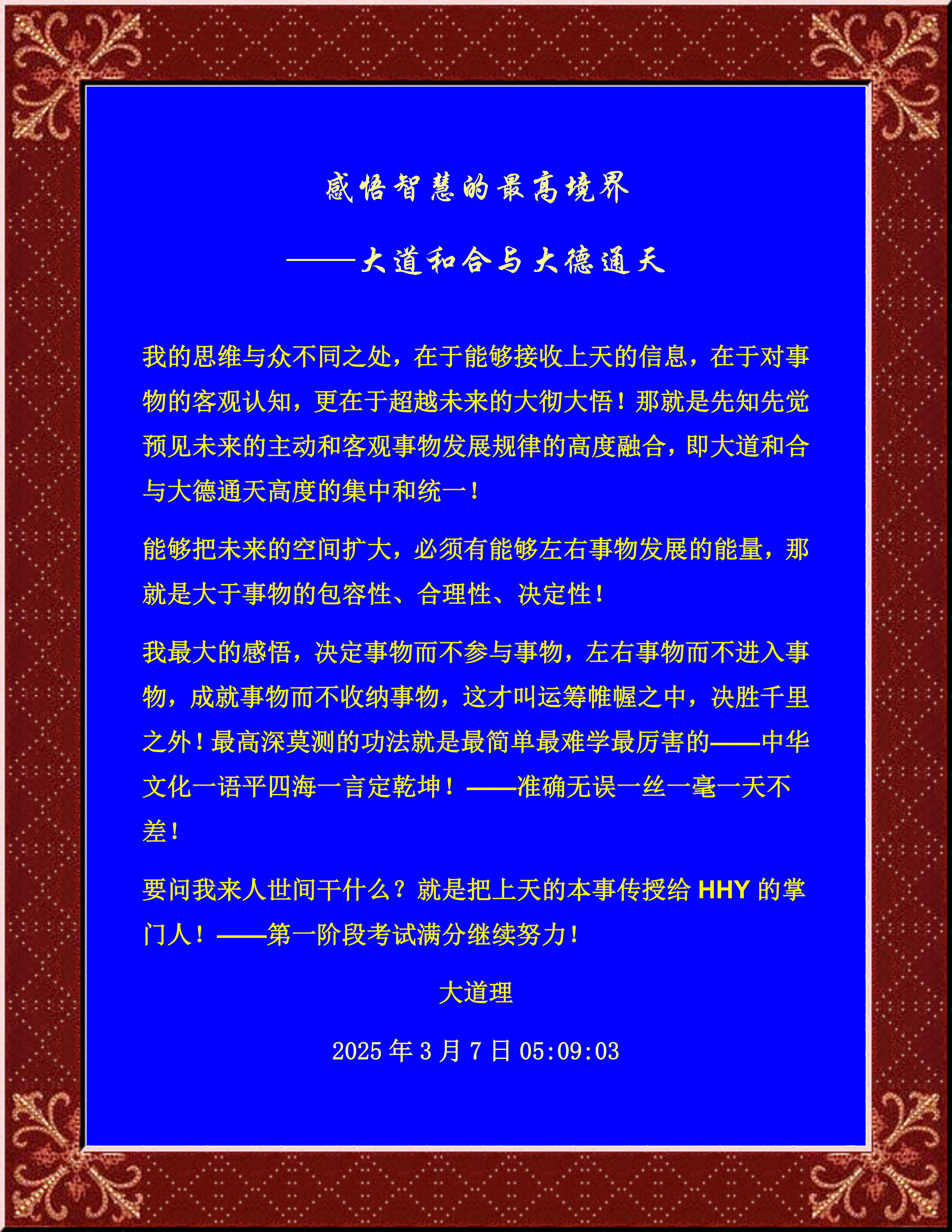 能夠耐得住三個階段過程的修煉而不急不躁不驕不躁,那就是開悟后的大徹大悟超越自我超越未來的高人,能夠隨心所欲決定事物,左右事物,成就事物的先知先覺圣賢之道——聯橫合縱相互成就大道和合大德通天上天的天意天機也!