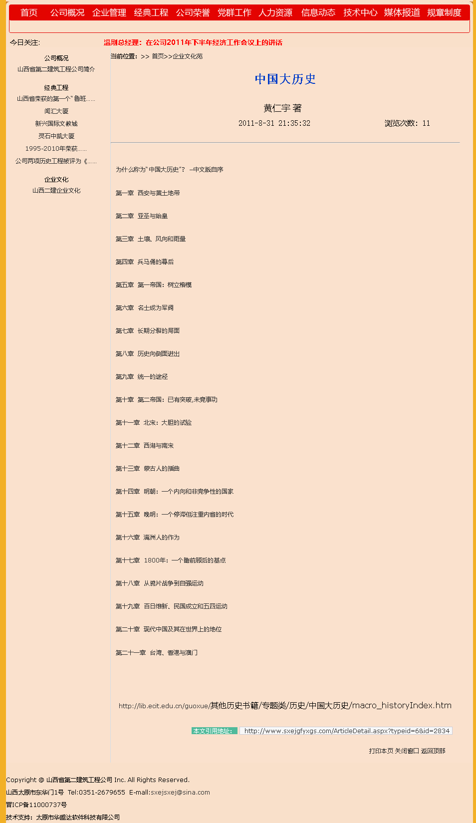 中國歷史典籍浩如煙海,常使初學者不得其門而入。黃仁宇先生倡導“大歷史”(macro-history),主張利用歸納法將現有史料高度壓縮,先構成一個簡明 而前后連貫的納領,然后在與歐美史比較的基礎上加以研究。本書從技術的角度分析中國歷史的進程,著眼于現代型的經濟體制如何為傳統社會所不容,以及是何契 機使其在中國土地上落腳。