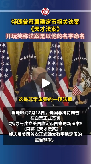當地時間7月18日,美國總統特朗普在白宮正式簽署《指導與建立美國穩定幣國家創新法案》(簡稱《天才法案》),標志著美國首次正式確立數字穩定幣的監管框架。