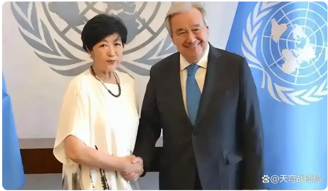就在這個微妙的時刻,東京都知事小池百合子以干練的姿態出現在聯合國大廳,她將一份精心準備的提案遞交給古特雷斯秘書長。