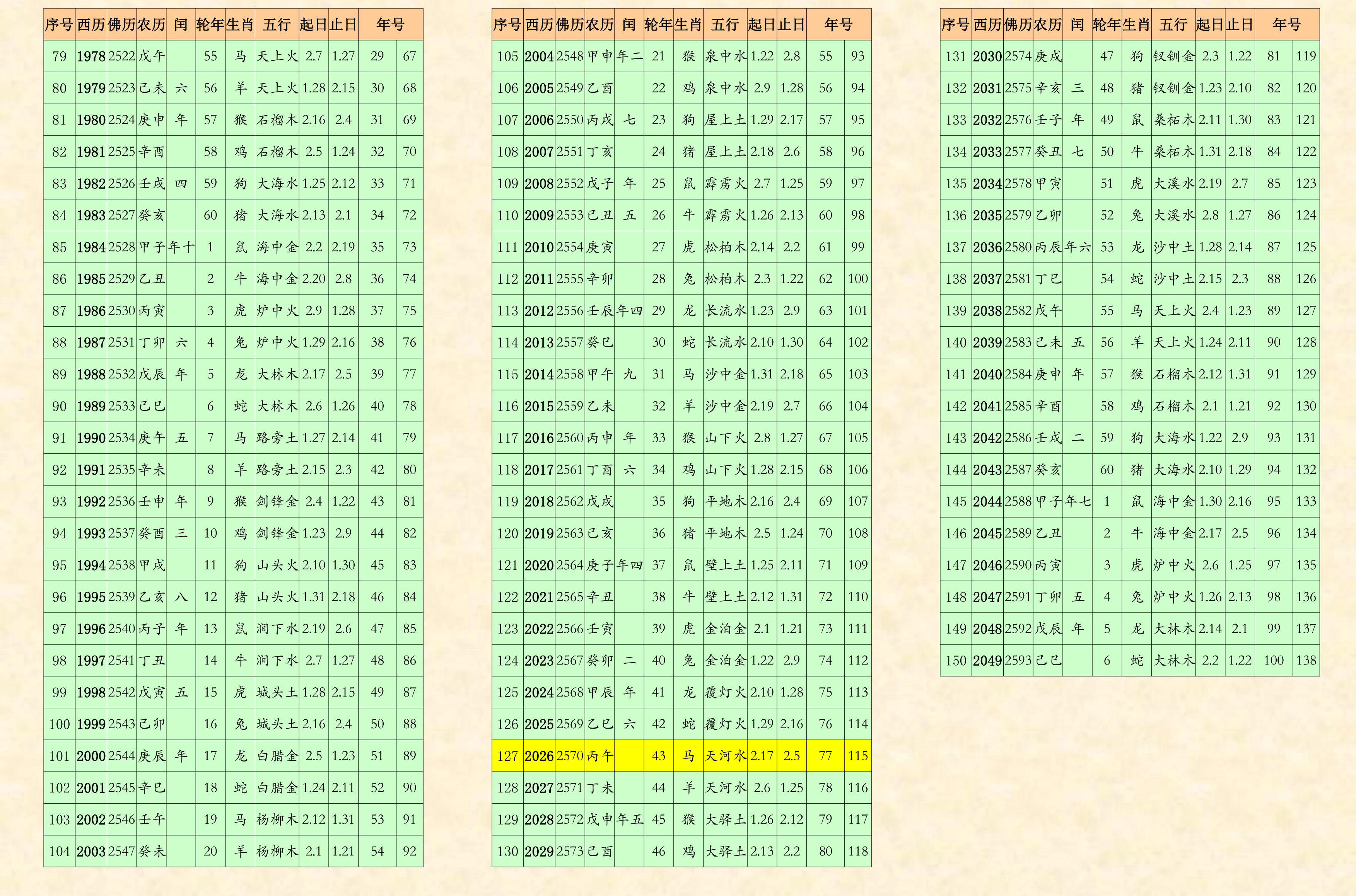 2026年農歷丙午年生肖年齡對照表