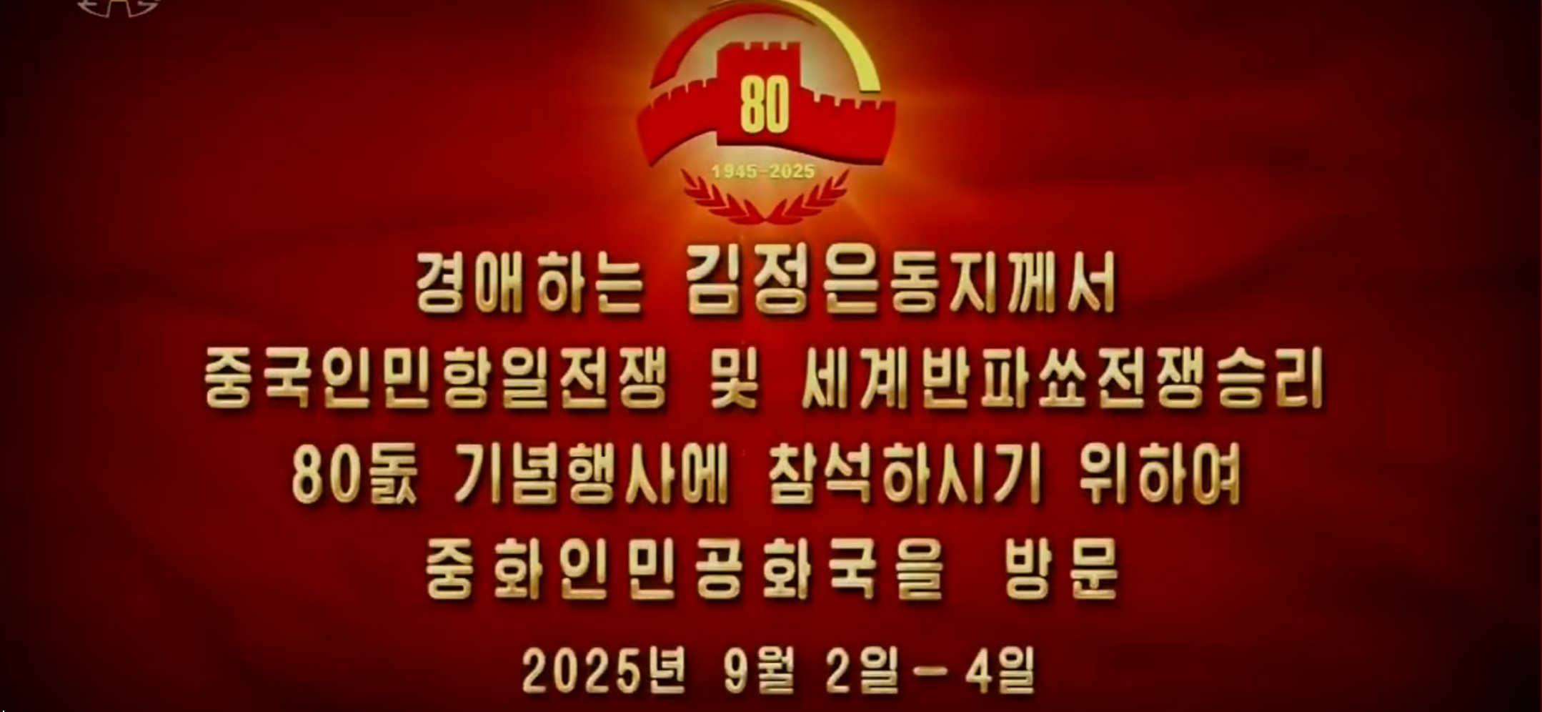 1 敬愛的 金正恩同志為了出席中國人民抗日戰(zhàn)爭及世界反法西斯戰(zhàn)爭勝利80周年紀(jì)念活動(dòng),您將訪問中華人民共和國 [2025.08.28.]