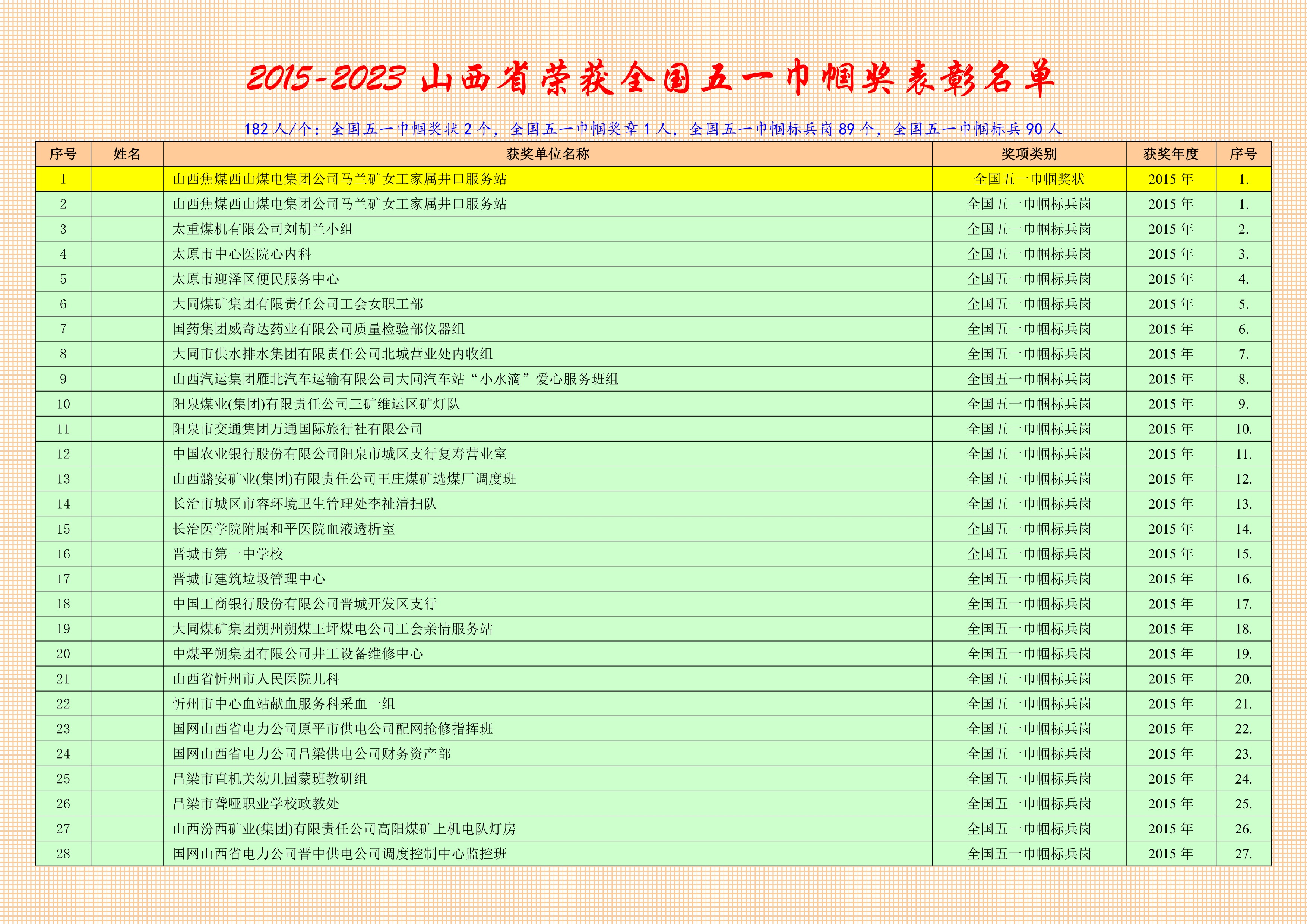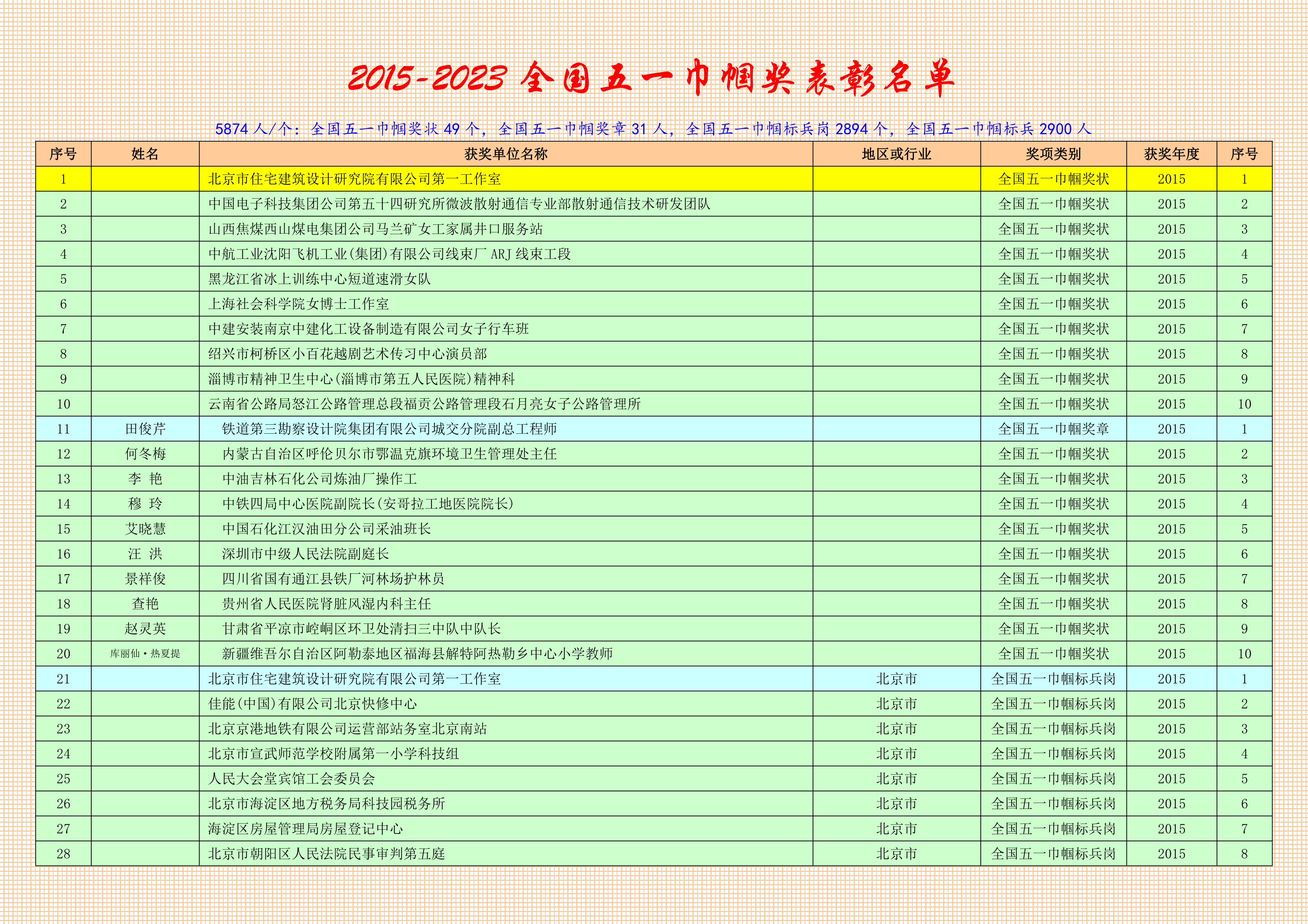 全國五一巾幗獎狀獲得者名單(1個)
