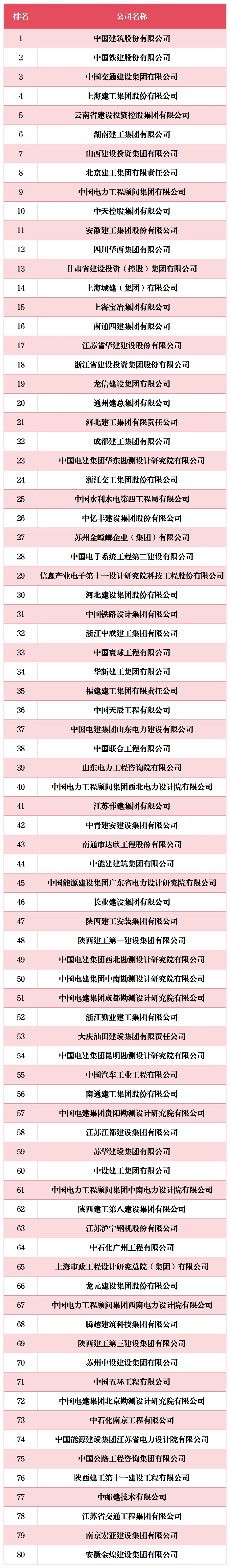 9月26日,美國《工程新聞記錄》(ENR)和中國《建筑時報》共同發布2025年度“中國承包商80強和工程設計企業60強”排名。中國建筑股份有限公司等80家承包商、中國電力工程顧問集團有限公司等60家工程設計企業入圍新一年度榜單。