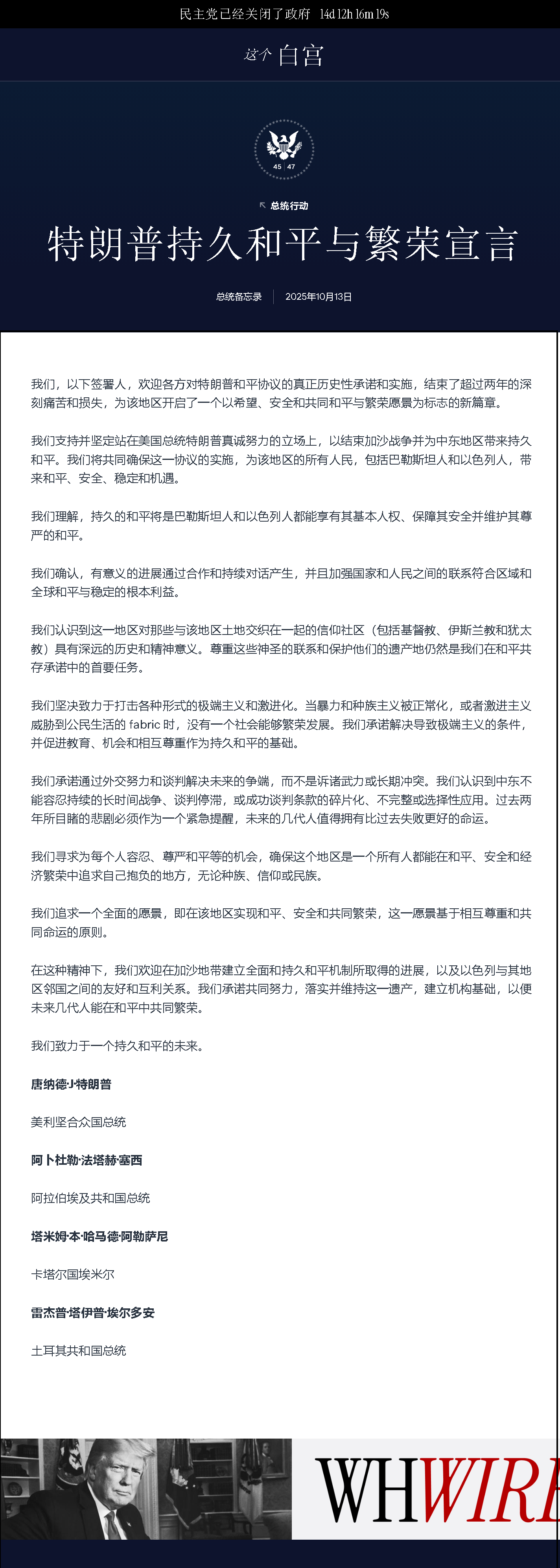如果真的從根本上徹底解決了中東沖突的矛盾根源,那可是大功齊天的天大好事,怕就怕這是《宣言》四國的一廂情愿,把中東又一次架在火上烤而再次進入岐途!