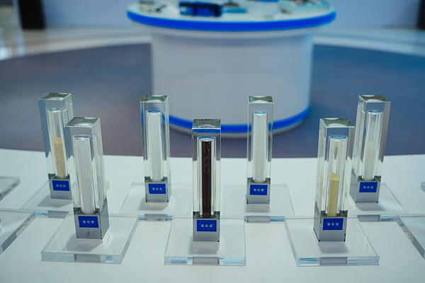 中國北方稀土(集團(tuán))高科技股份有限公司展出了各類稀土材料、稀土金屬和稀土氧化物等。 視覺中國