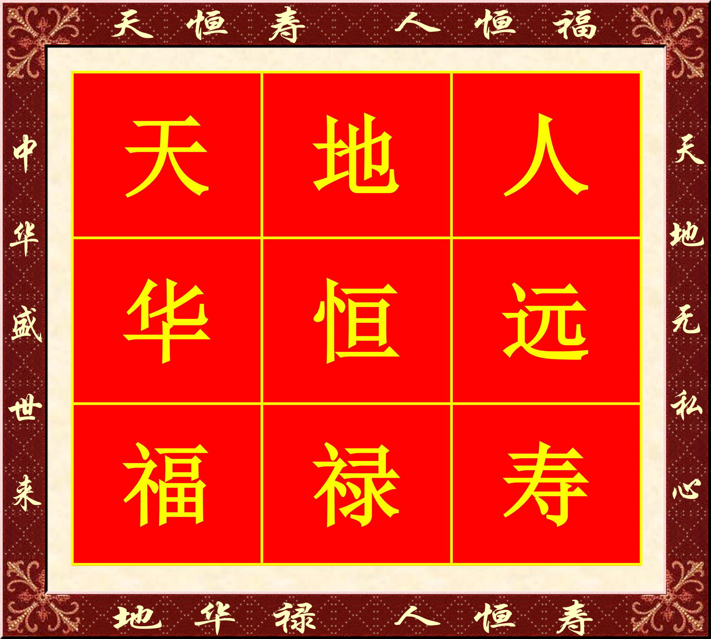 中華永恒久遠,天時地利人和,天恒壽人恒福,地華祿人恒壽,天意成就華恒遠!