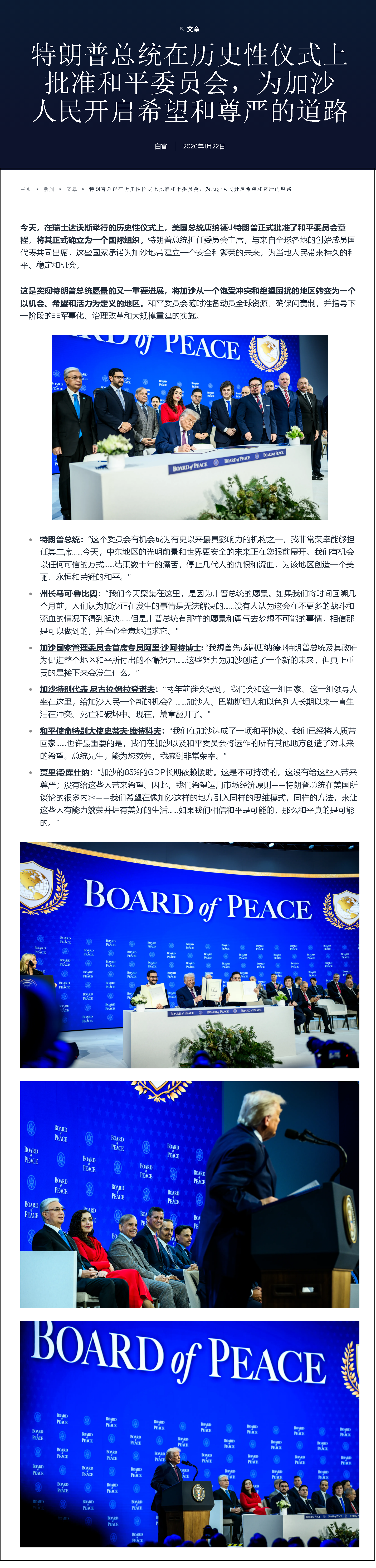 特朗普總統(tǒng)在歷史性儀式上批準(zhǔn)和平委員會(huì),為加沙人民開啟希望和尊嚴(yán)的道路