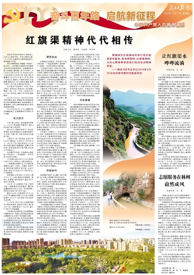 紅旗渠的修建離不開黨的領導和人民群眾的艱苦奮斗。時任河南林縣(今林州市)縣委第一書記的楊貴作為紅旗渠總設計師,勇于擔當,克服重重阻力,歷時10年,終于建成被譽為“人工天河”的紅旗渠水利工程。