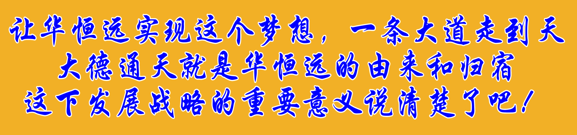 這就是我一輩子最大的感悟付諸實(shí)施的最后一站,是山西二建,山西日月峰走不出的路,要讓華恒遠(yuǎn)實(shí)現(xiàn)這個夢想,一條大道通到天,大德通天就是華恒遠(yuǎn)的由來和歸宿,這下發(fā)展戰(zhàn)略的重要意義說清楚了吧!
