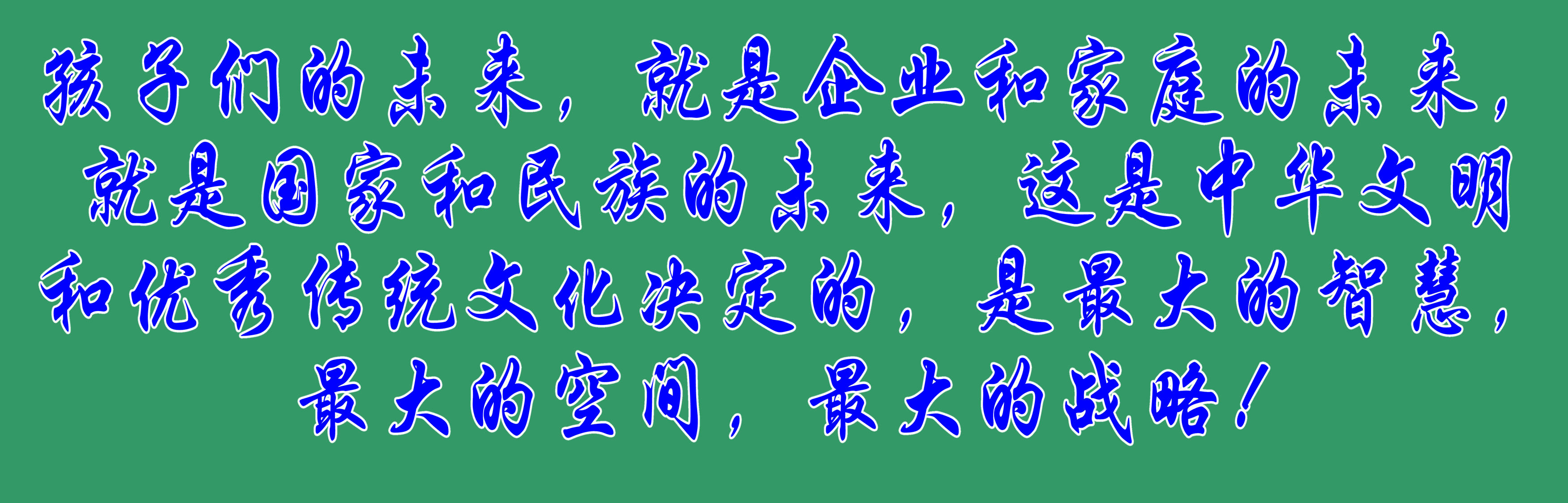孩子們的未來(lái),就是企業(yè)和家庭的未來(lái),就是國(guó)家和民族的未來(lái),這是中華文明和優(yōu)秀傳統(tǒng)文化決定的,是最大的智慧,最大的空間,最大的戰(zhàn)略!