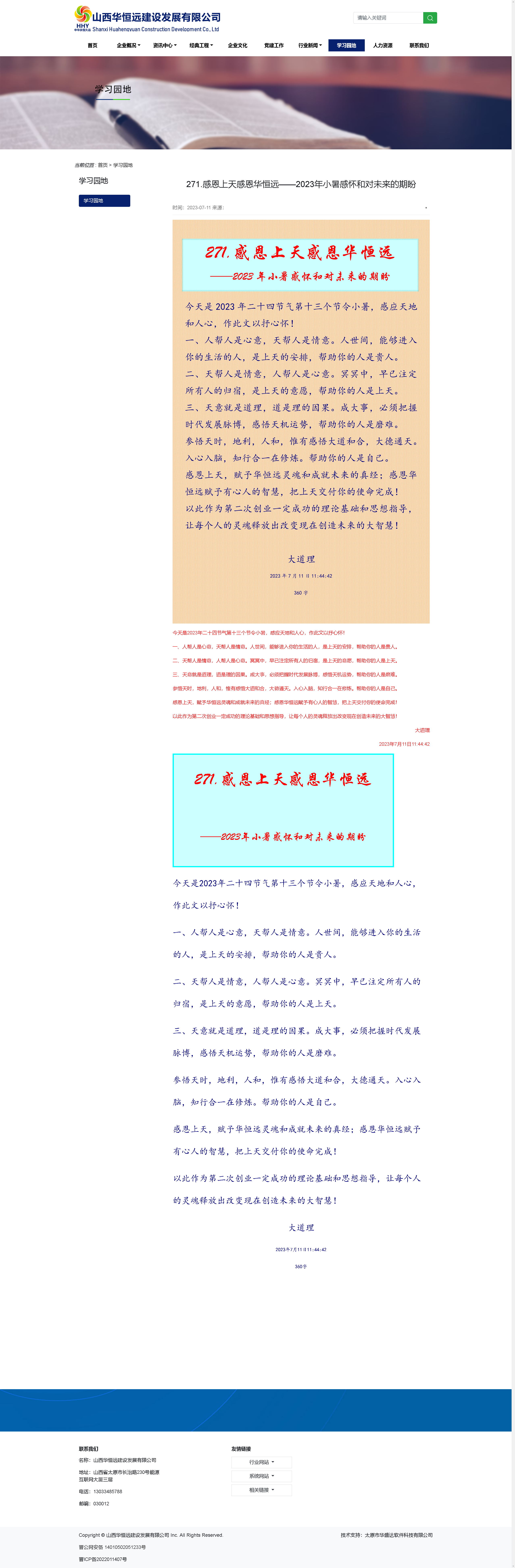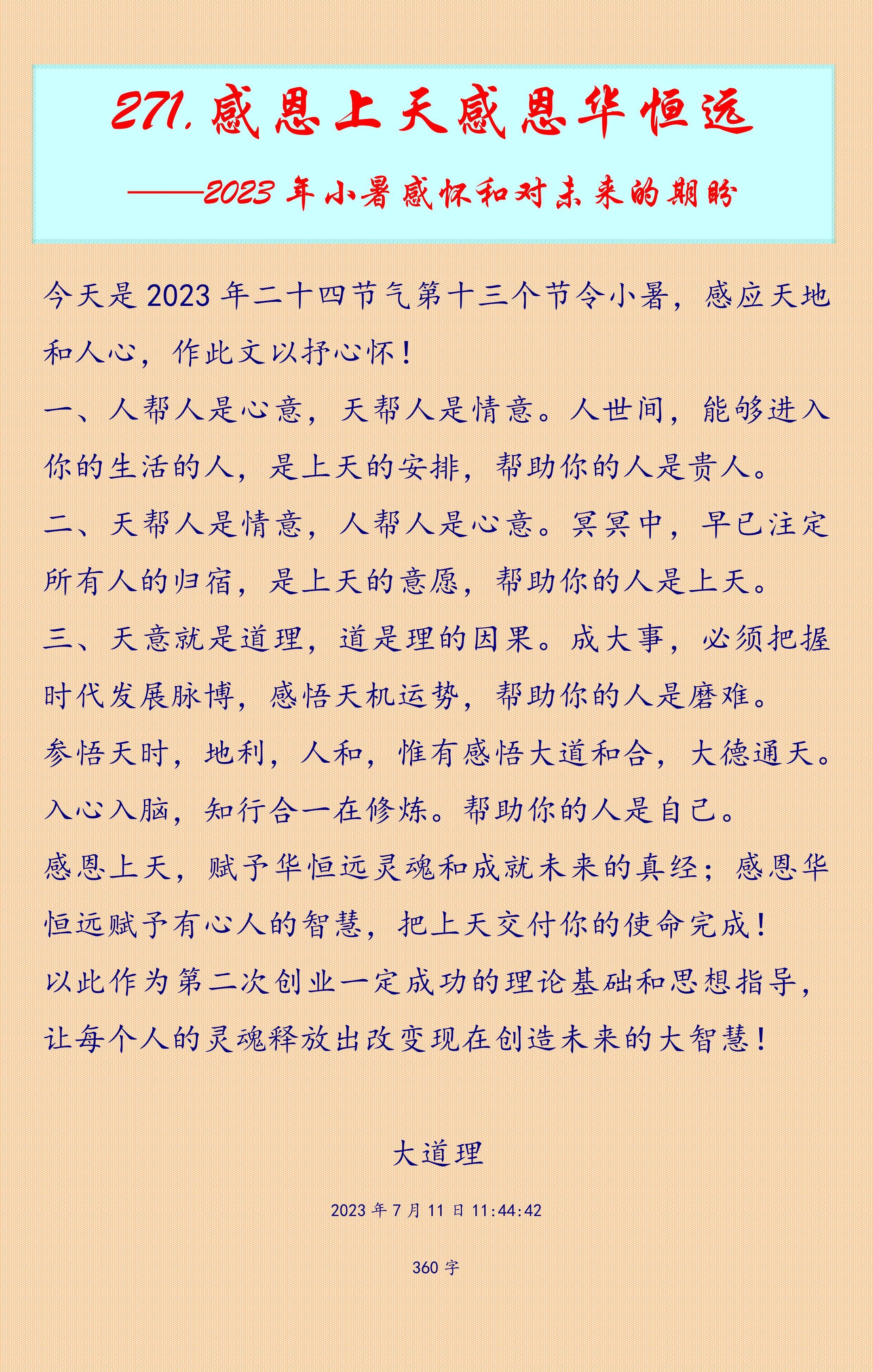 271.感恩上天感恩華恒遠(yuǎn) ——2023年小暑感懷和對未來的期盼 |