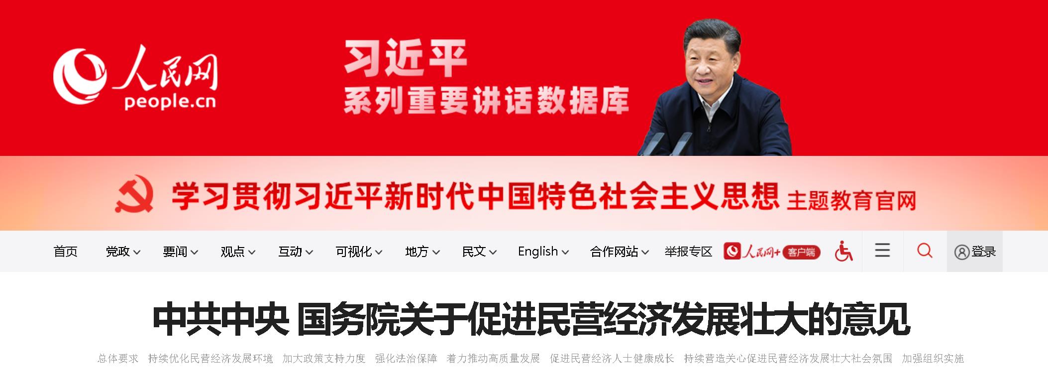 今天,《中共中央國務院關于促進民營經濟發展壯大的意見》發布。