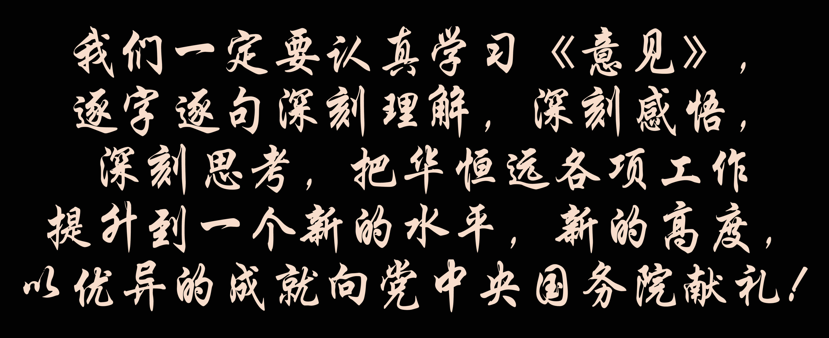 我們一定要認真學習《意見》,逐字逐句深刻理解,深刻感悟,深刻思考,把華恒遠各項工作提升到一個新的水平,新的高度,以優異的成就向黨中央國務院獻禮!