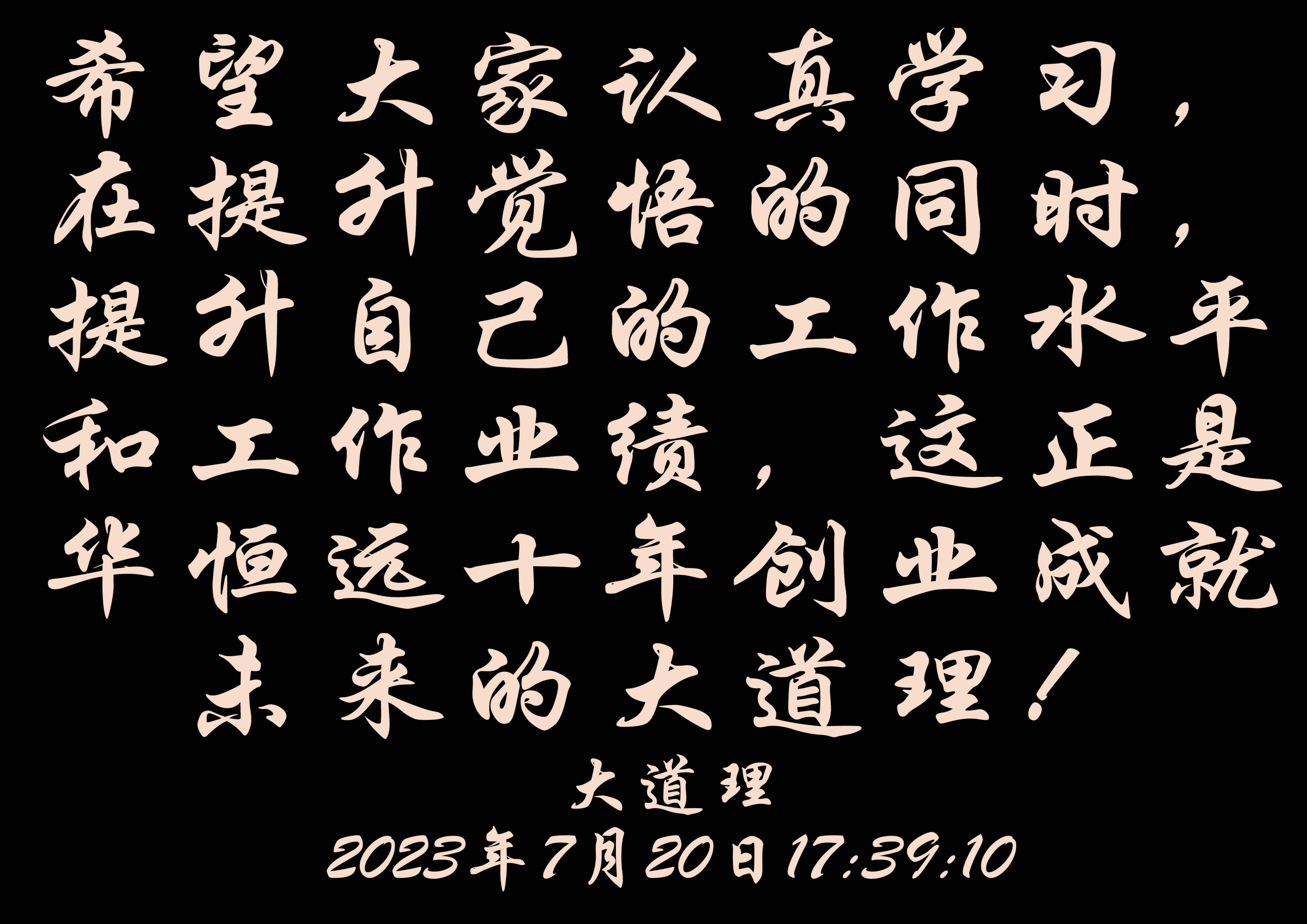 希望大家認真學習,在提升覺悟的同時,提升自己的工作水平和工作業績,這正是華恒遠十年創業成就未來的大道理!