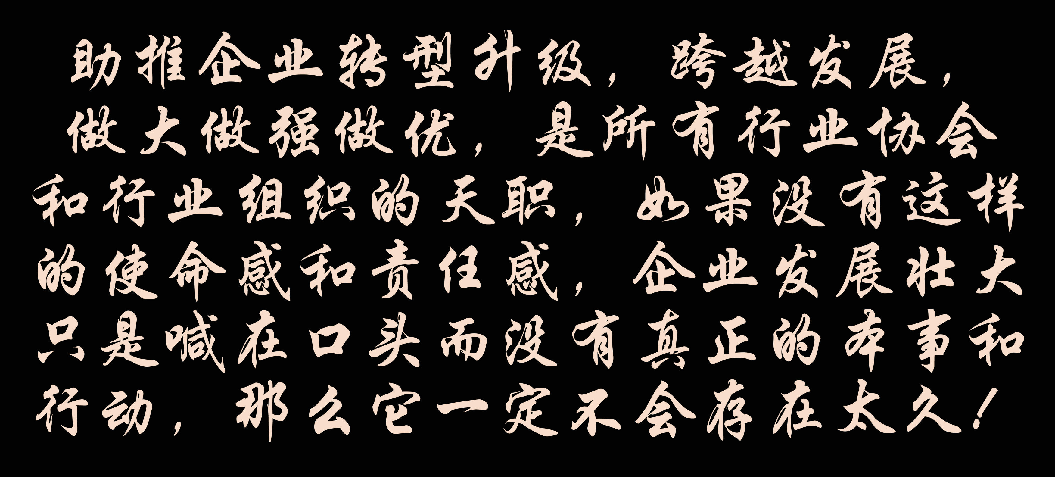 助推企業轉型升級,跨越發展,做大做強做優,是所有行業協會和行業組織的天職,如果沒有這樣的使命感和責任感,企業發展壯大只是喊在口頭而沒有真正的本事和行動,那么它一定不會存在太久!