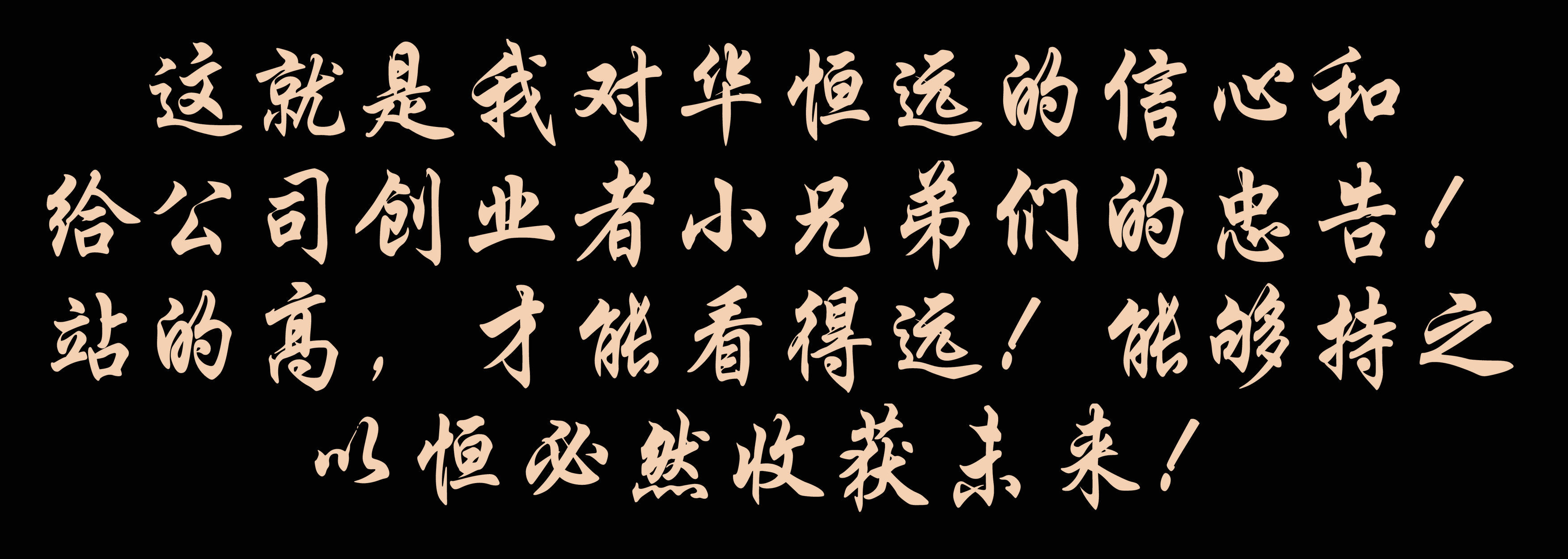 這就是我對華恒遠的信心和給公司創業者小兄弟們的忠告!站的高,才能看得遠!能夠持之以恒必然收獲未來!