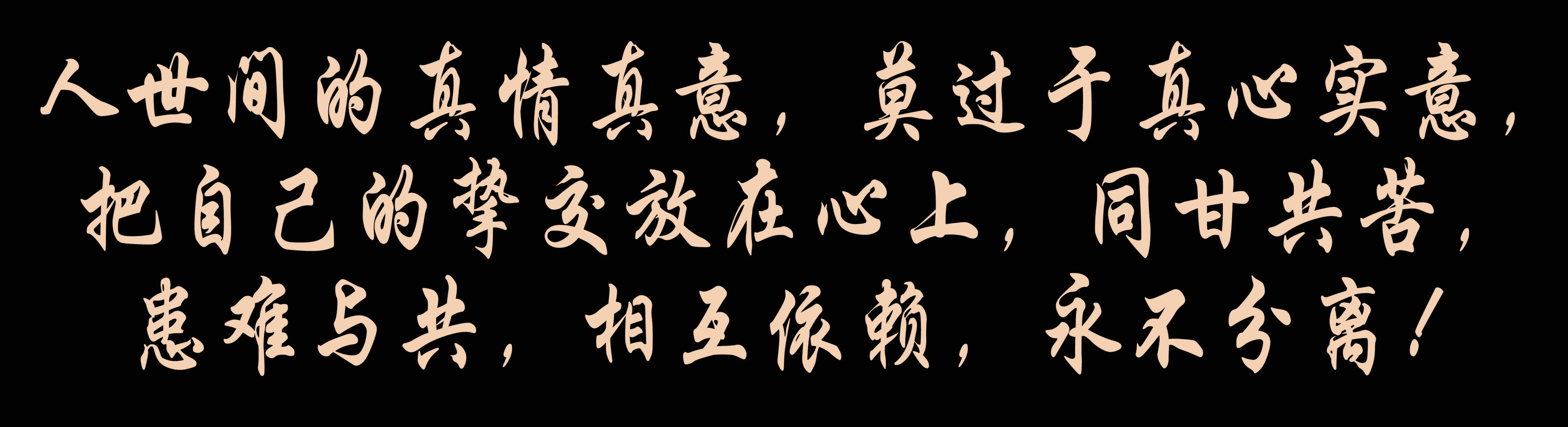 人世間的真情真意,莫過于真心實意,把自己的摯交放在心上,同甘共苦,患難與共,相互依賴,永不分離!