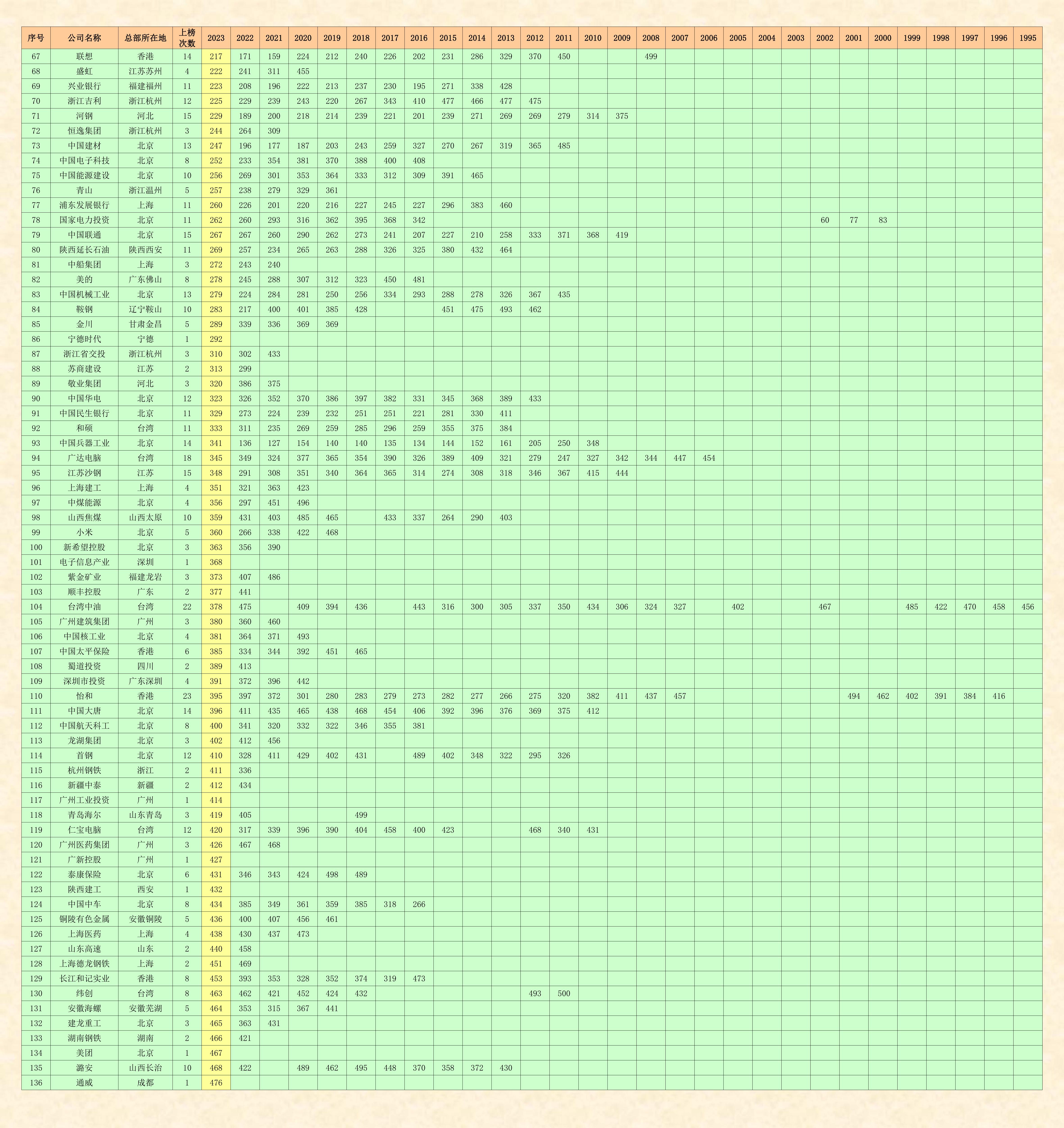 《財富》世界500強(qiáng)雜志社,從1995年開始在中國登陸,已經(jīng)連續(xù)舉辦了29期中文版的世界500強(qiáng)排名榜,我收集到的完整資料,僅缺第一期1995年的全榜單,所以,目前只能編輯二十八期。即1996-2023年《財富》世界500強(qiáng)和中國上榜企業(yè)的名單,待日后有機(jī)會的話再補(bǔ)齊。