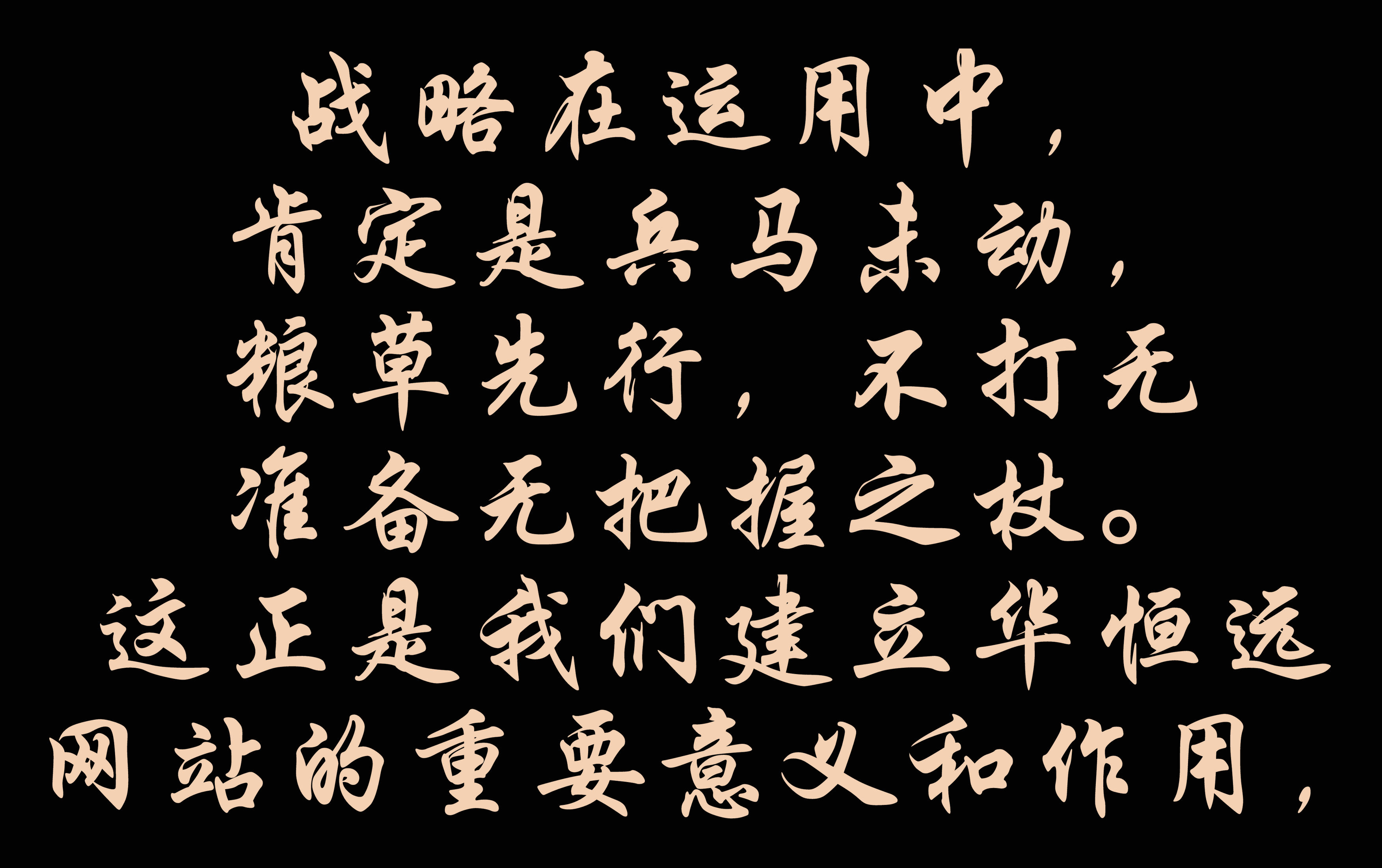 戰略在運用中,肯定是兵馬未動,糧草先行,不打無準備無把握之杖。這正是我們建立華恒遠網站的重要意義和作用,讓更多層面更多層次的瀏覽者,知道華恒遠,喜歡華恒遠,就已經達到了戰略發展的第一步,那么第二步就好邁開了!三年時間,人們自然而然接受華恒遠,你們可是要出大名的,那個時候,才會真正懂得什么是戰略,才會自覺自愿加入到開發網站的行動之中,那就到了網站改版的必須空間了!