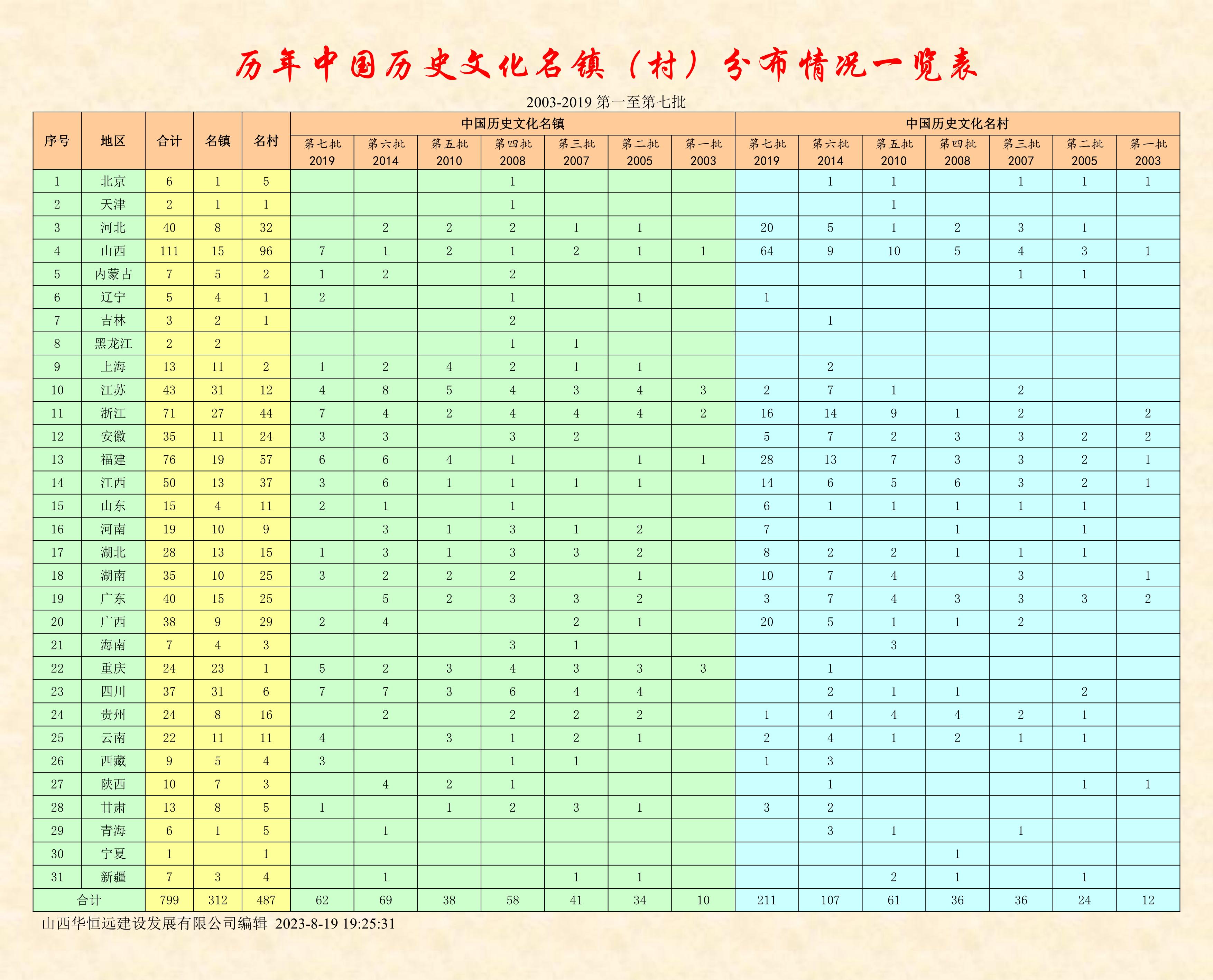 下午,完成了《全國歷史文化名鎮(村)名錄》的分布情況一覽表,山西省以111個名鎮名村,位居第一名!