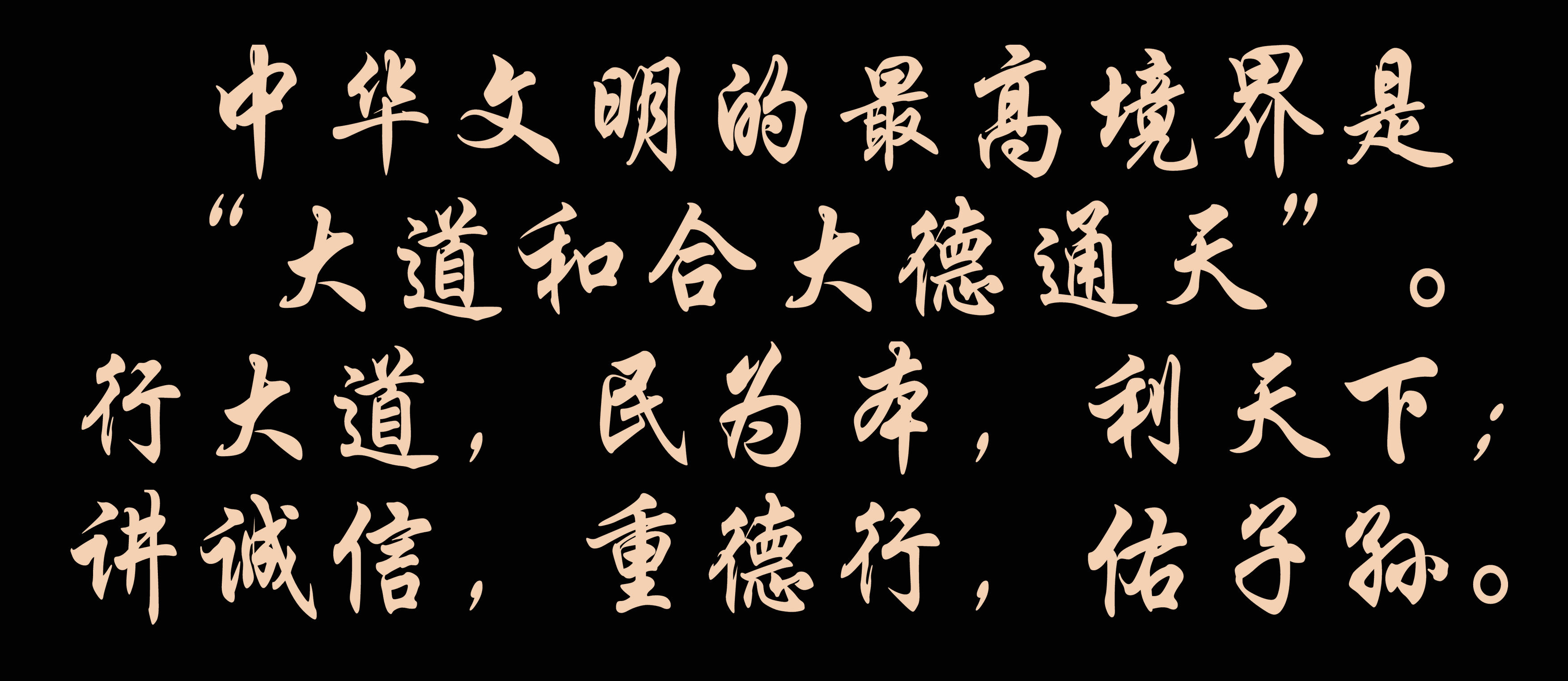 中華文明的最高境界是“大道和合大德通天”。行大道,民為本,利天下;講誠(chéng)信,重德行,佑子孫。