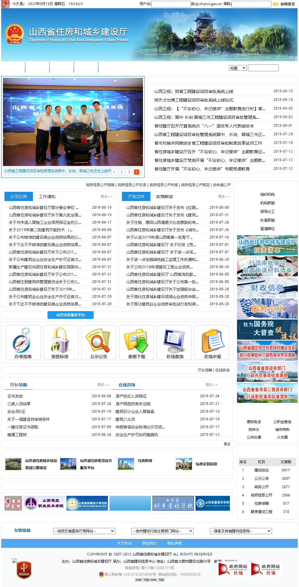 山西省住房和城鄉建設廳網站升級改版試運行公告