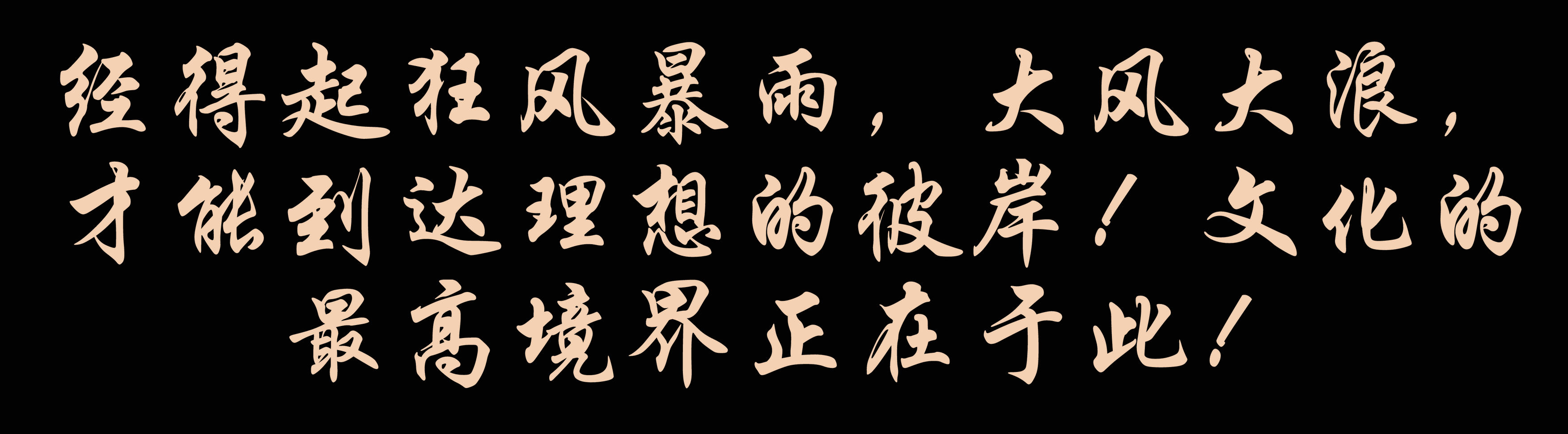 之所以奮戰九個月,就是把咱們的家底鑄牢筑實,經得起狂風暴雨,大風大浪,才能到達理想的彼岸!文化的最高境界正在于此!