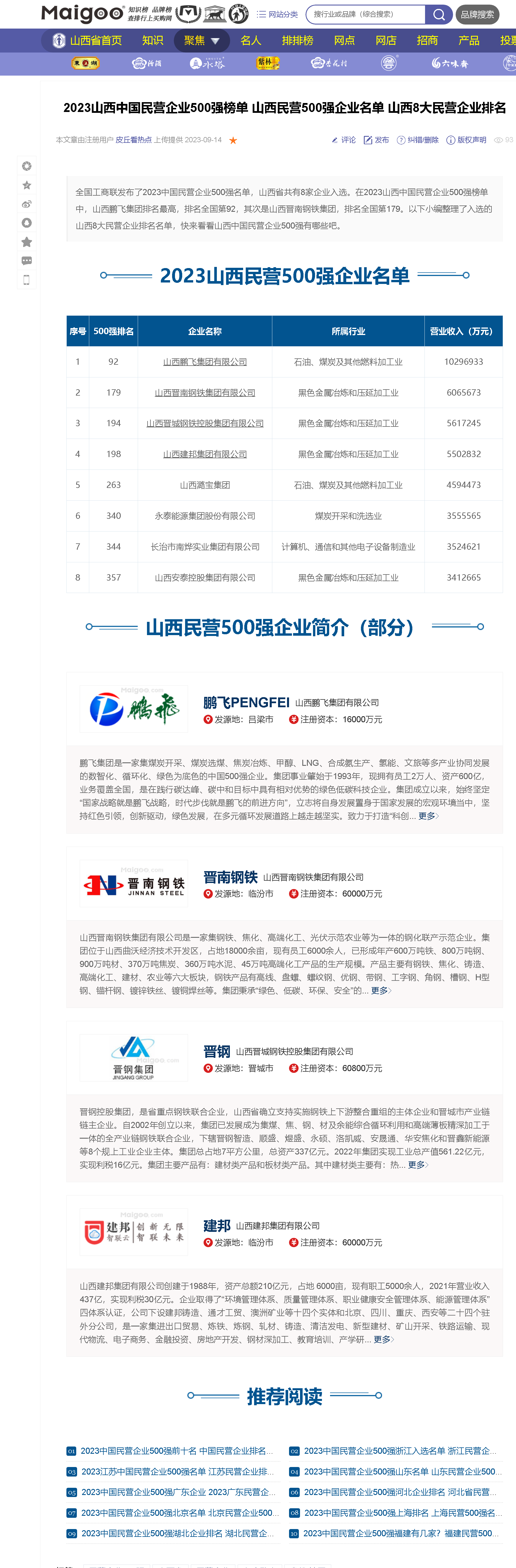 【行業動態】山西8家民企入圍2023中國民營企業500強