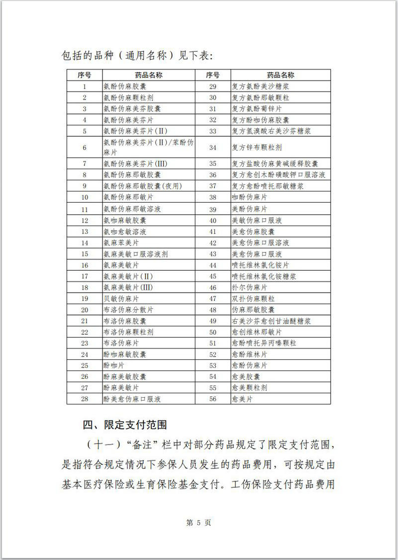 (四)《藥品目錄》包括限工傷保險基金準予支付費用的品種5個;限生育保險基金準予支付費用的品種4個。工傷保險和生育保險支付藥品費用時不區分甲、乙類。