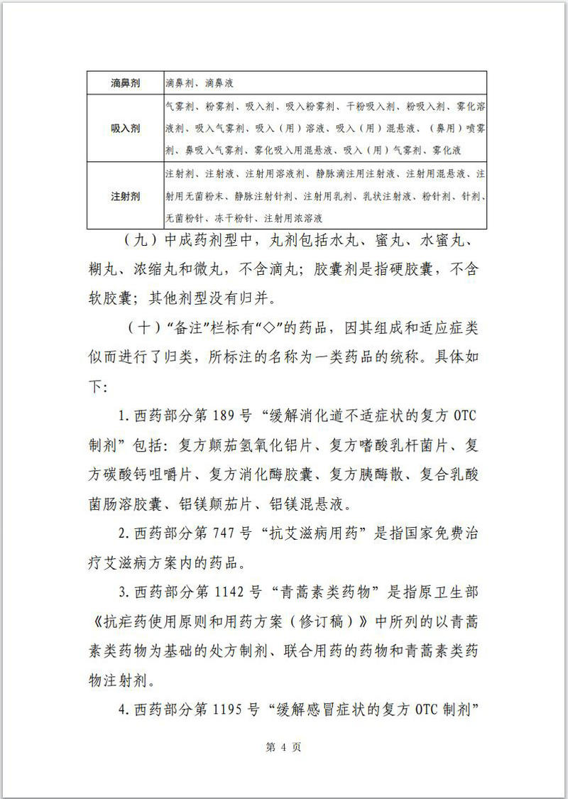 3.西藥部分第1142號“青蒿素類藥物”是指原衛生部《抗瘧藥使用原則和用藥方案(修訂稿)》中所列的以青蒿素類藥物為基礎的處方制劑、聯合用藥的藥物和青蒿素類藥物注射劑。