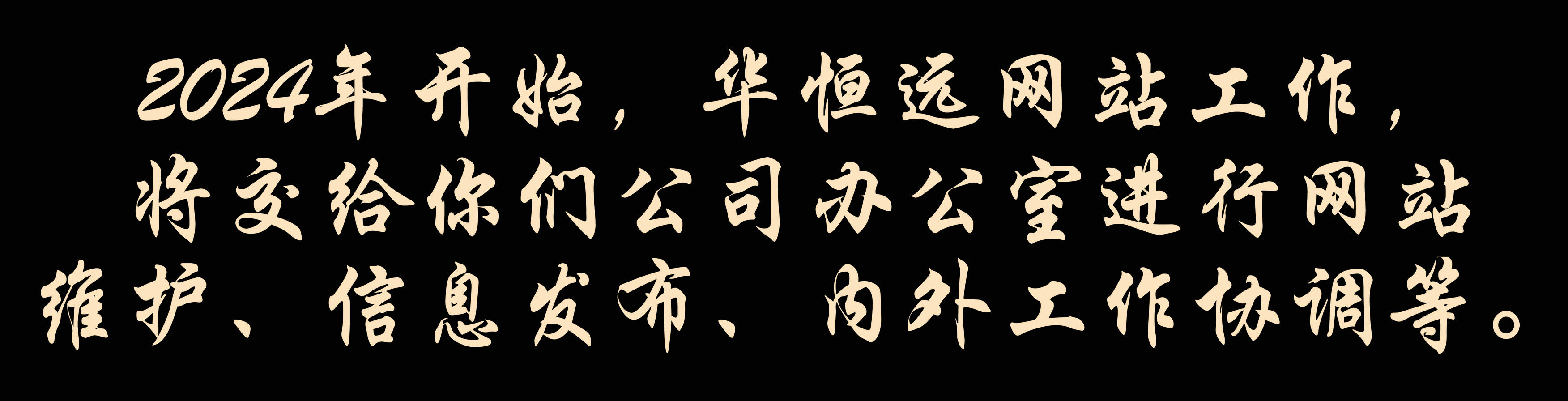 提前打個招呼,2024年開始,華恒遠網站工作,將交給你們公司辦公室進行網站維護、信息發布、內外工作協調等。