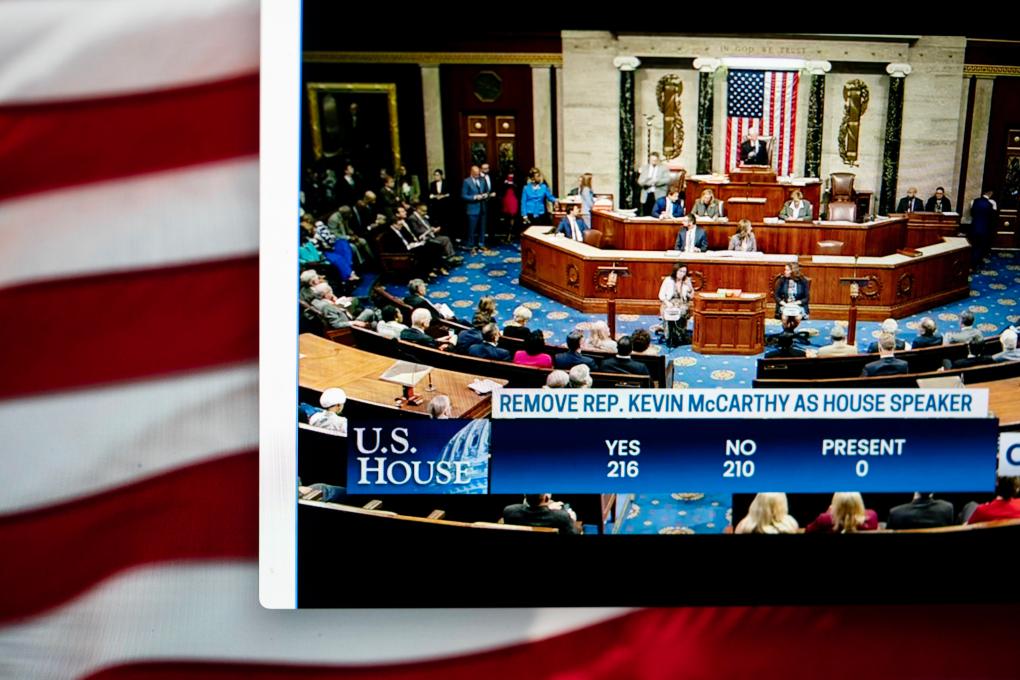 美國國會政黨內斗日趨“白熱化”。1月,共和黨眾議員麥卡錫經歷15輪投票勉強當選眾議長,履職僅9個月后就被迫下臺,成為美國歷史上首位被投票罷免的在任眾議院議長。