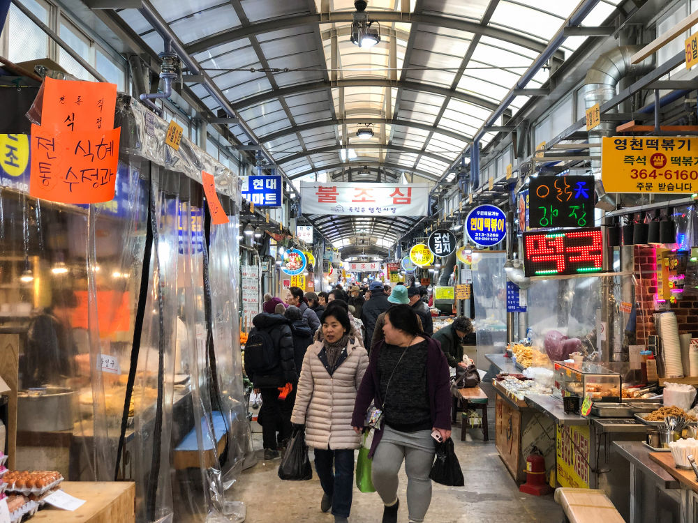 人們在韓國首爾的靈泉傳統市場購買年貨。新華社記者王婧嬙攝