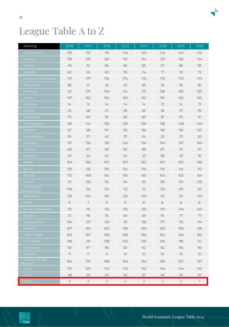 世界銀行的數據顯示,按購買力平價計算,中國2022年蟬聯世界最大經濟體,美國排名第二,印度第三,日本第四,俄羅斯躋身前五名,德國仍排名第六。