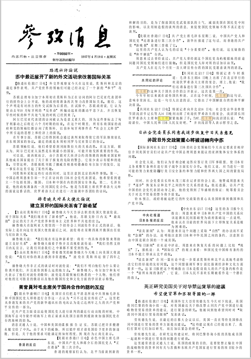 值得注意的是,這個訪問北平的第二個社會黨代表團將包括像前副首相西尾末廣和前眾議院議長杜岡駒吉等右派社會黨領(lǐng)袖。大家知道這些右派社會黨人一直同美國來往很密切,而且對于在目前把同共產(chǎn)黨中國的關(guān)系正常化的問題采取消極態(tài)度。