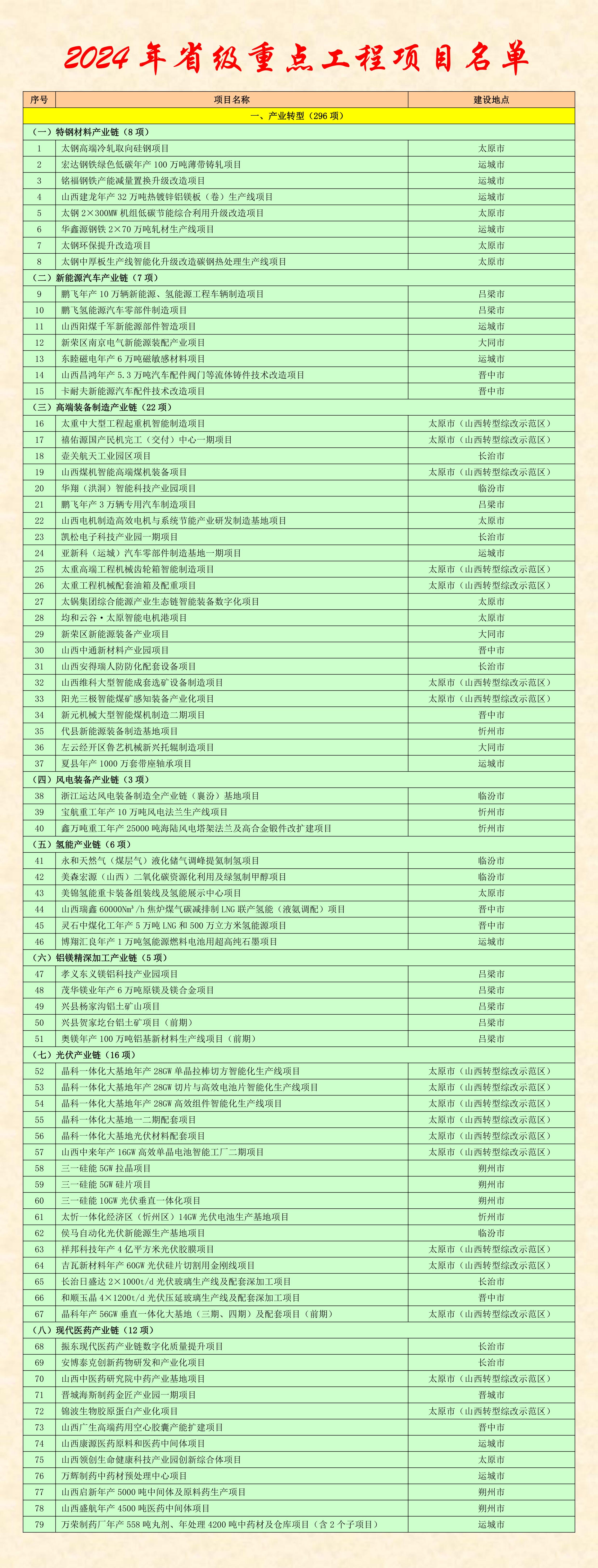 山西省2024年省級重點工程項目名單發布,五大類663個工程項目, 51個行業或領域。