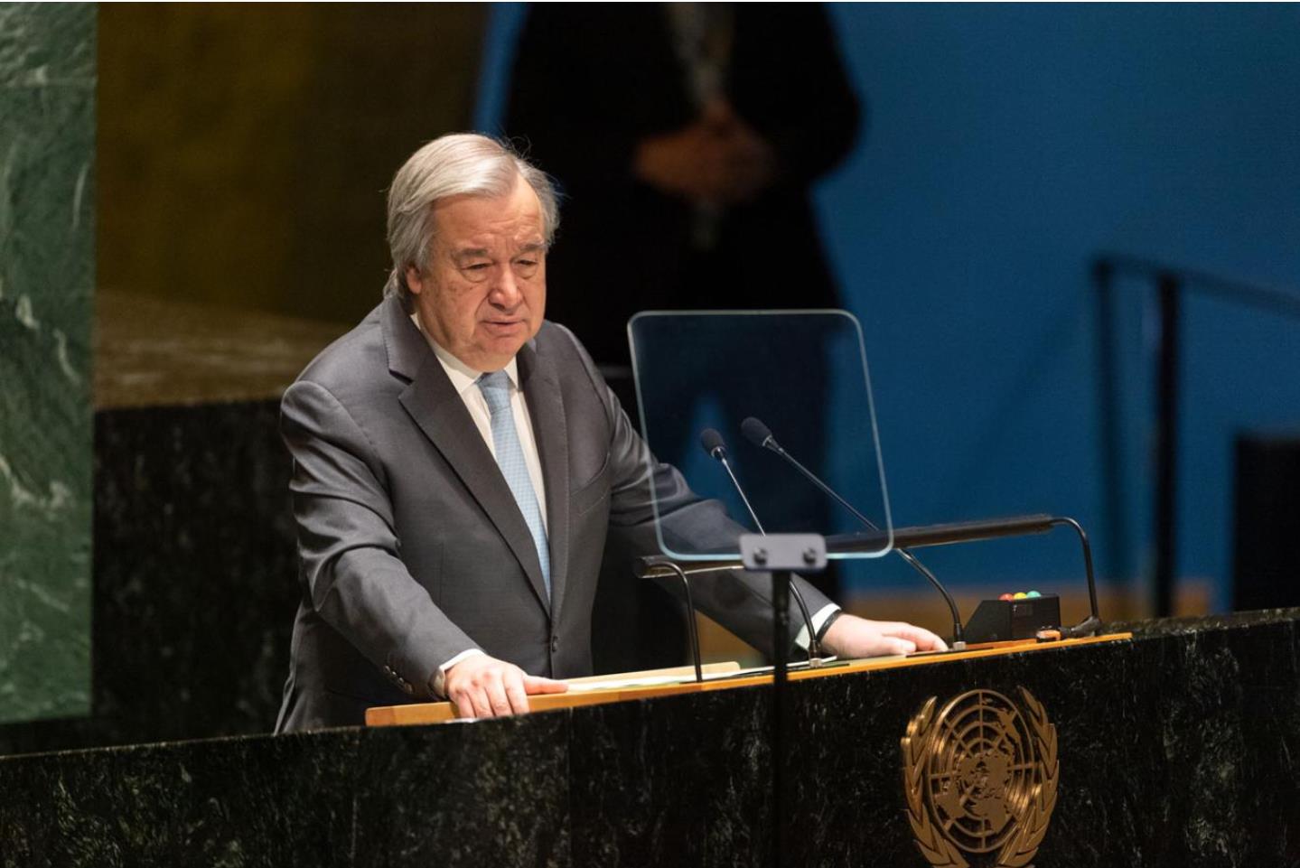 安東尼奧·古特雷斯秘書長向聯合國大會會員國介紹本組織的工作及其2024年的優先事項。聯合國圖片/地球保護組織