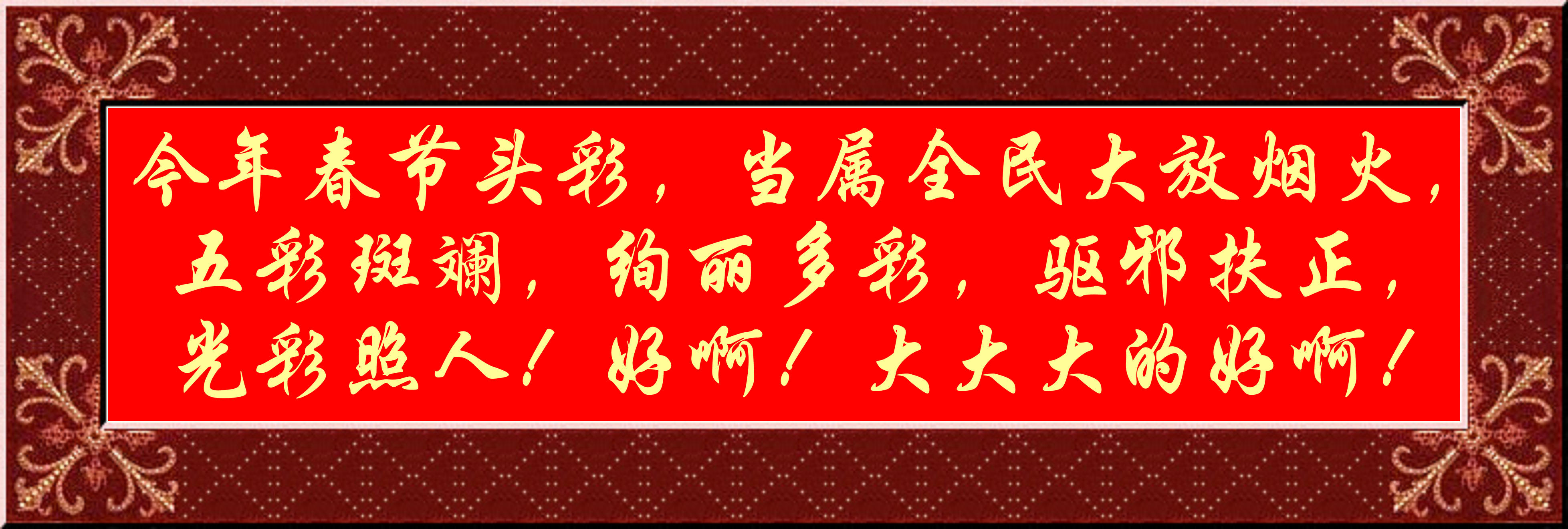 今年春節頭彩,當屬全民大放煙火,五彩斑斕,絢麗多彩,驅邪扶正,光彩照人!好啊!!大大大的好啊!!!