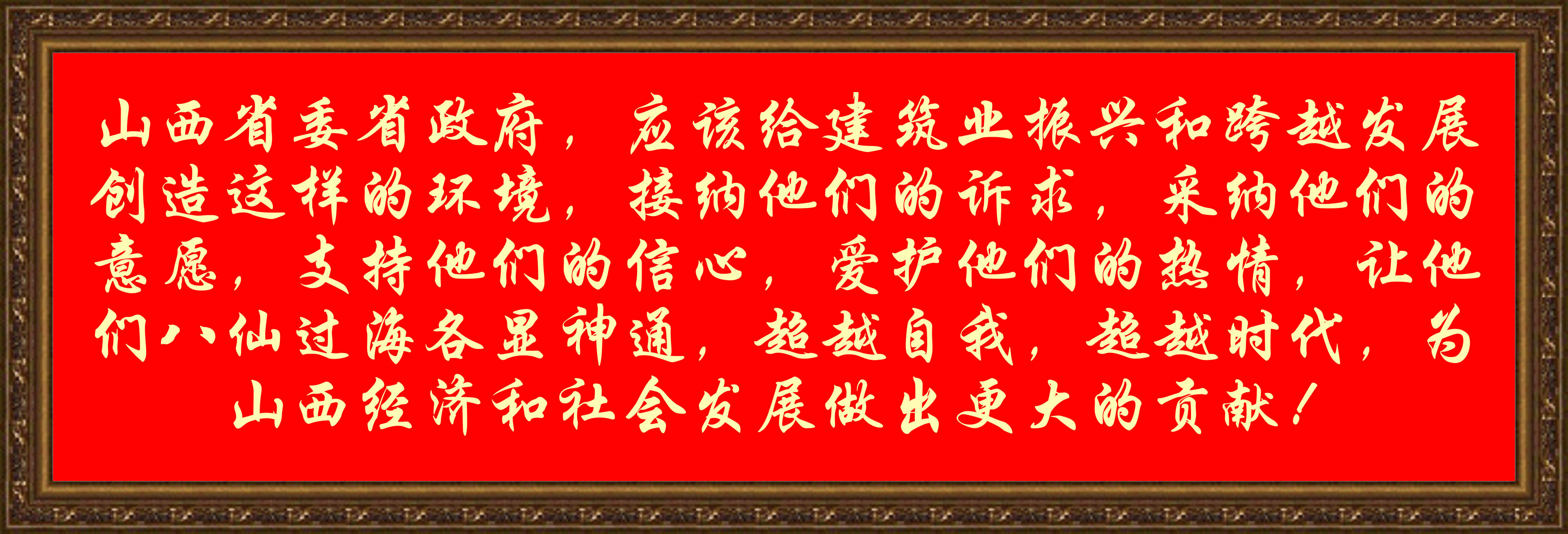 山西省委省政府,應該給建筑業振興和跨越發展創造這樣的環境,接納他們的訴求,采納他們的意愿,支持他們的信心,愛護他們的熱情,讓他們八仙過海各顯神通,超越自我,超越時代,為山西經濟和社會發展做出更大的貢獻!