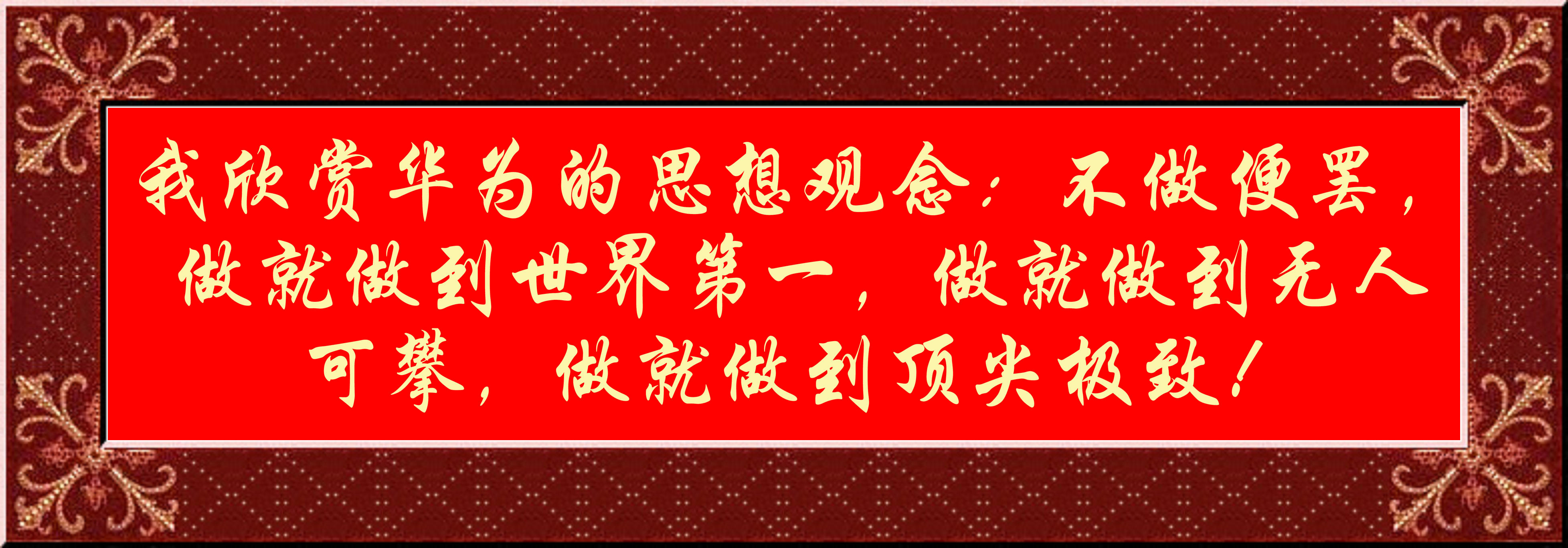 我欣賞華為的思想觀念:不做便罷,做就做到世界第一,做就做到無人可攀,做就做到頂尖極致!——中華民族至高無上的文化和信仰!