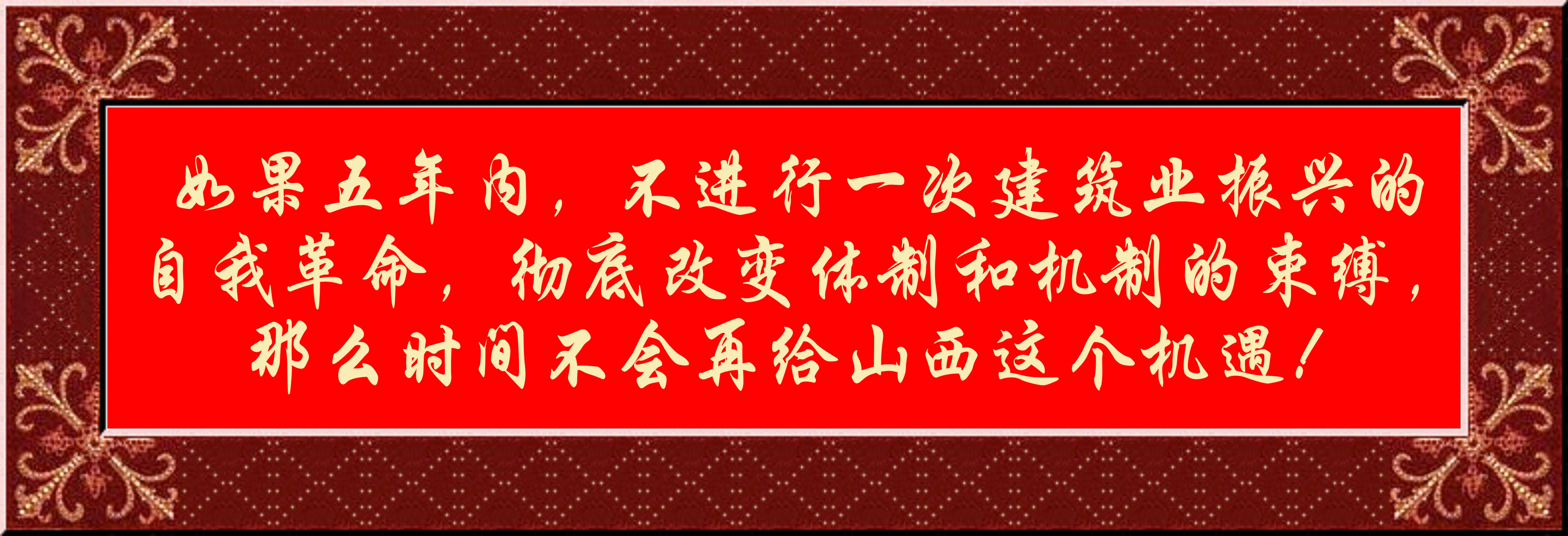 如果五年內,不進行一次建筑業振興的自我革命,徹底改變體制和機制的束縛,那么時間不會再給山西這個機遇!
